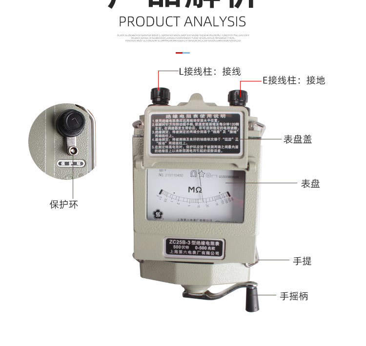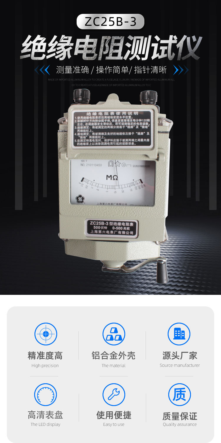 本仪表用于测量各种电机、电缆、变压器、电讯元器件家用电器和其他电气设备的绝缘电阻。