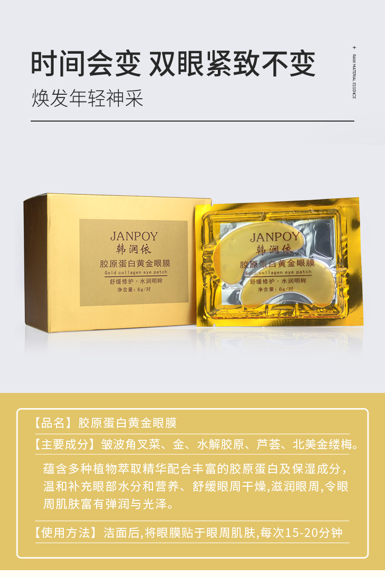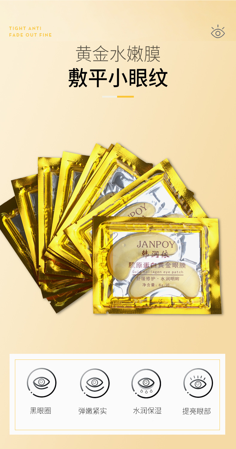Han Runyi Укрепляющая и осветляющая Золотая маска для глаз Коллагеновая увлажняющая маска для глаз Увлажняющая и уменьшающая темные круги маска для глаз