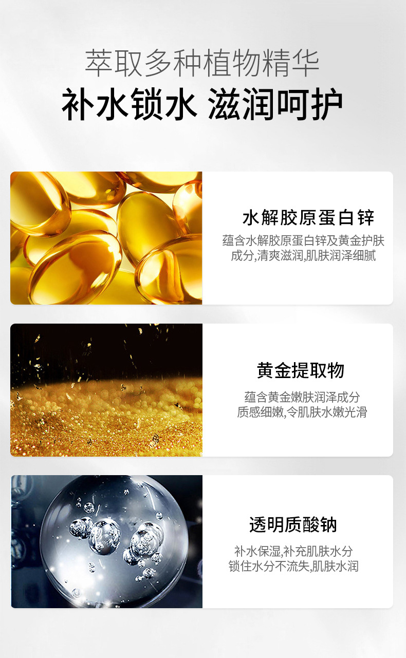 Ромашка; Коллаген; Витамин B; Вода; Глицерин; Эластин; Пропиленгликоль; Протеогликан; Растворимые в воде Наночастицы золота