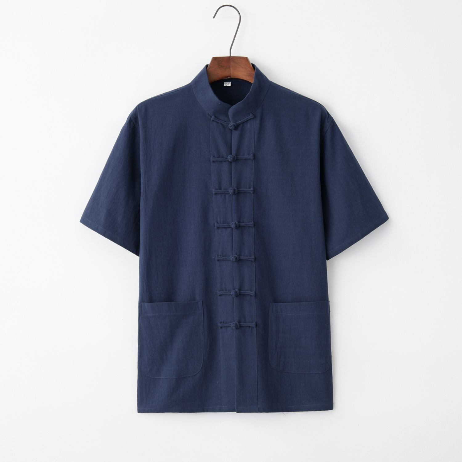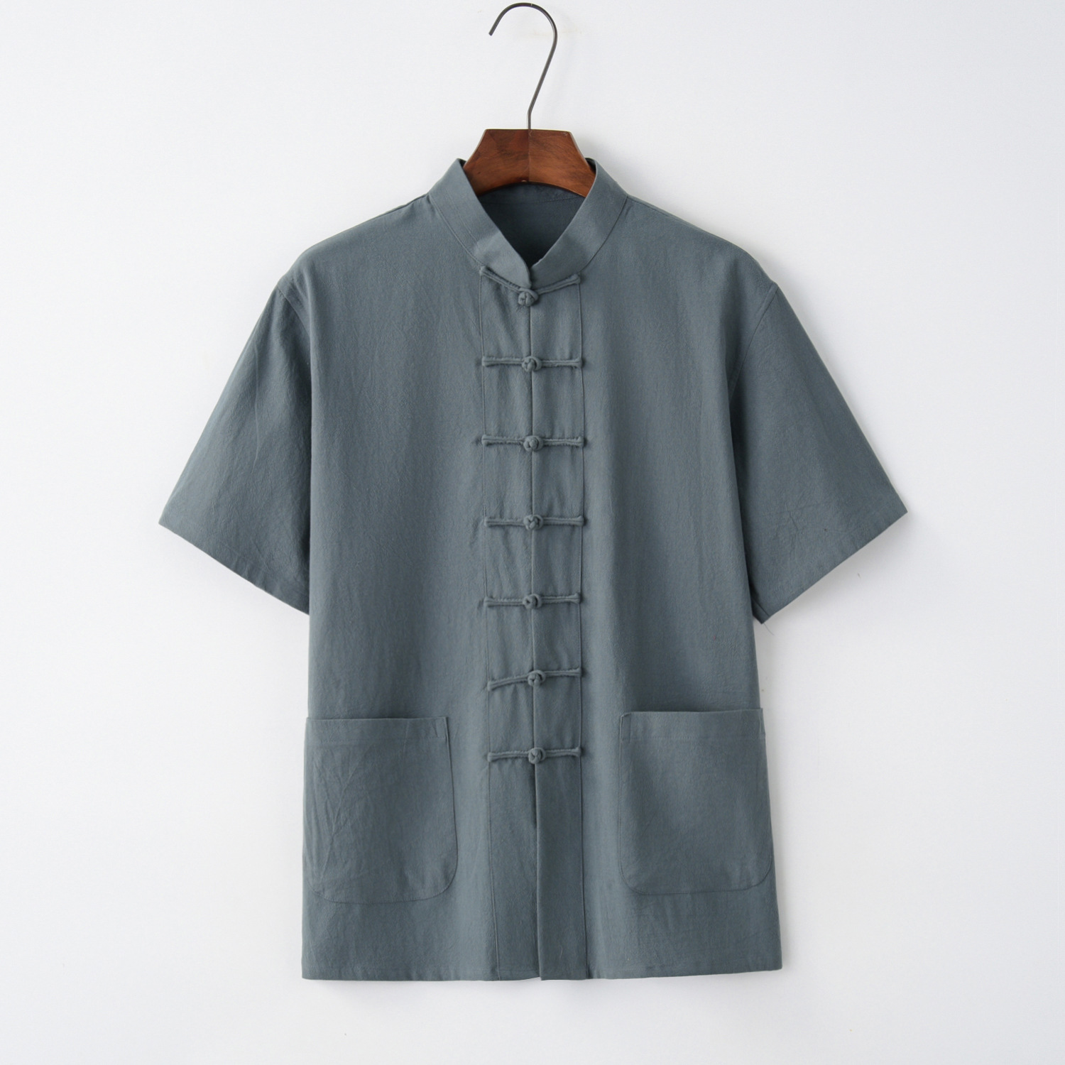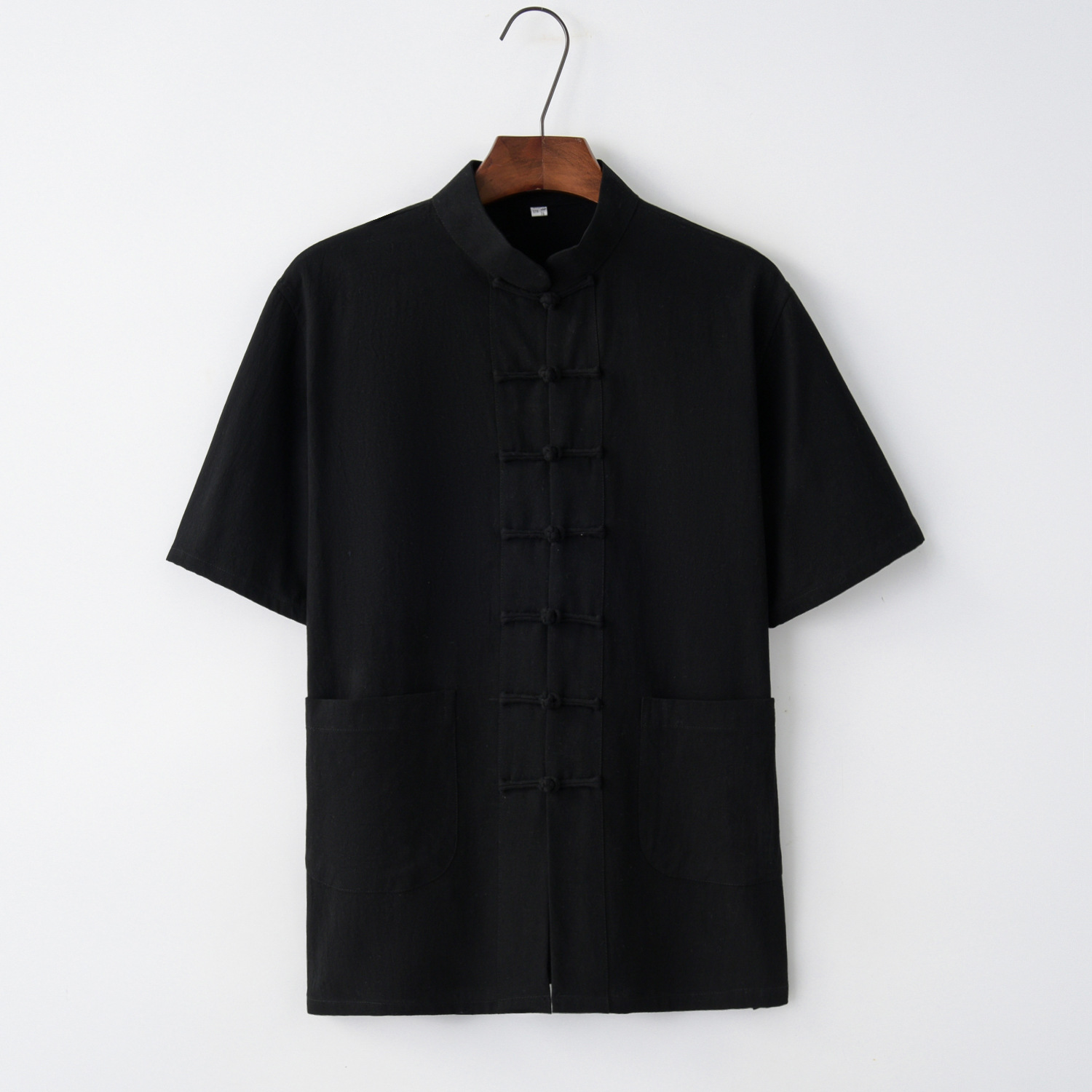 Мужской костюм Тан в китайском стиле, летний китайский хлопок и лен, винтажная пряжка, Тонкий Повседневный Топ с короткими рукавами, ханьфу