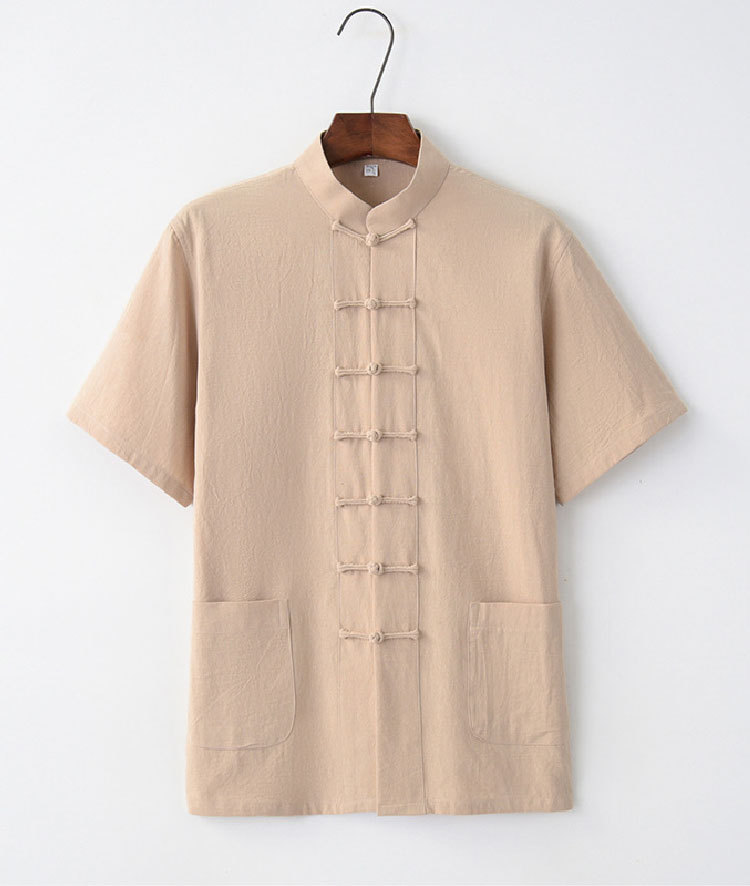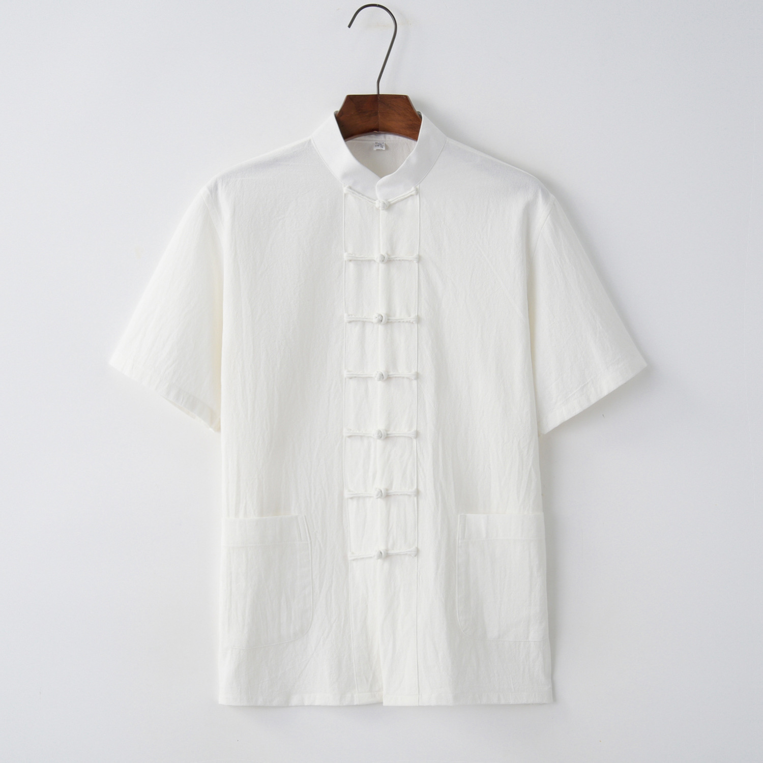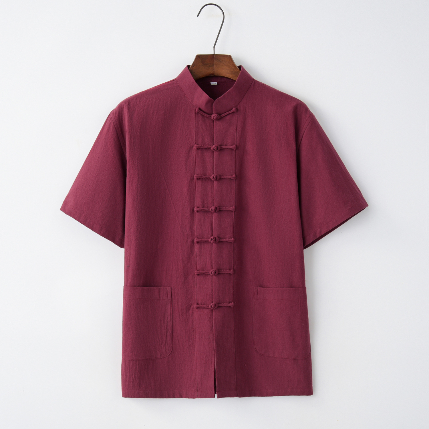 Мужской костюм Тан в китайском стиле, летний китайский хлопок и лен, винтажная пряжка, Тонкий Повседневный Топ с короткими рукавами, ханьфу