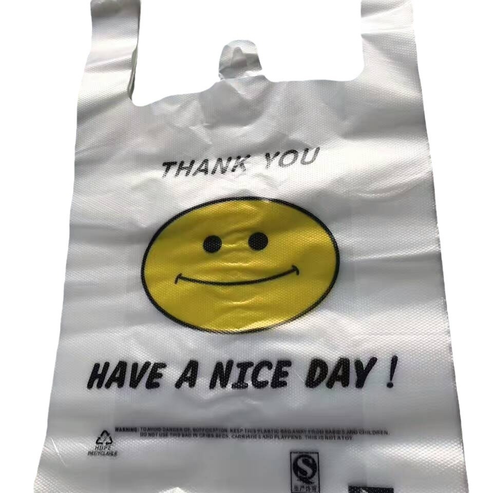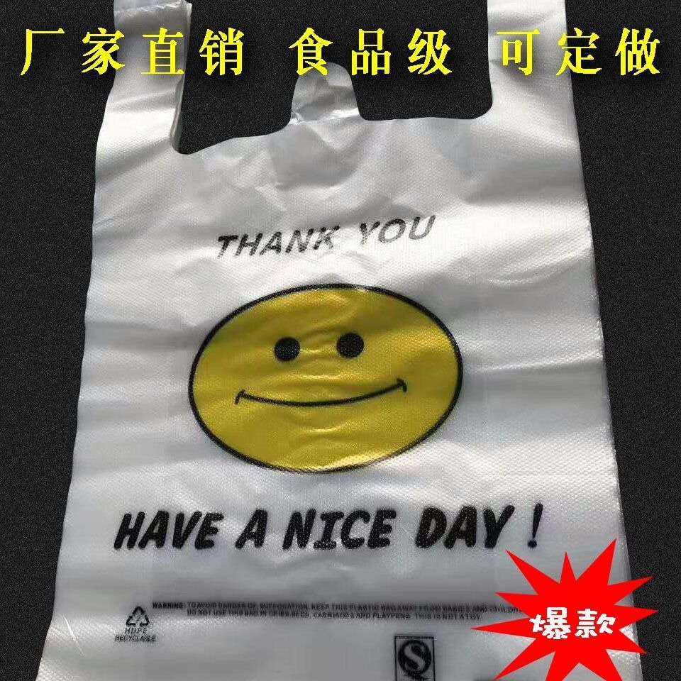 Готовые пластиковые пакеты от производителя, сумки для жилетов, сумки для покупок в супермаркете, сумки со смайликом из нового материала, упаковочные пакеты, утолщенные.
