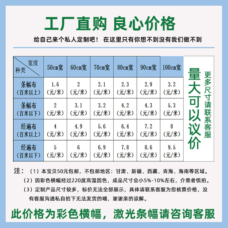 温馨提示:彩色横幅高温固色的原因,尺寸可能会缩水3%-5%!