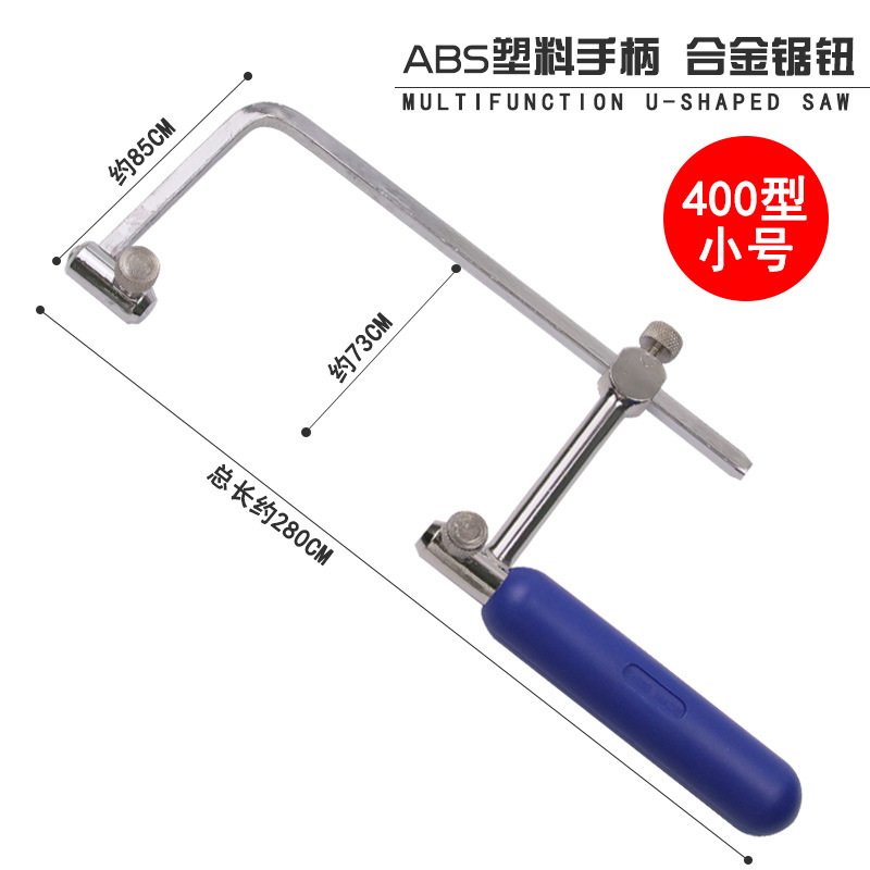 ASB400款-可调式,自然状态锯弓两锯条座间净距离约0-135mm,喉深约76mm,总长度约195-290mm,净重约150g.