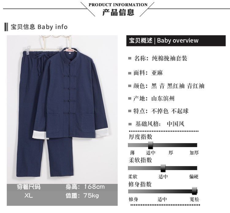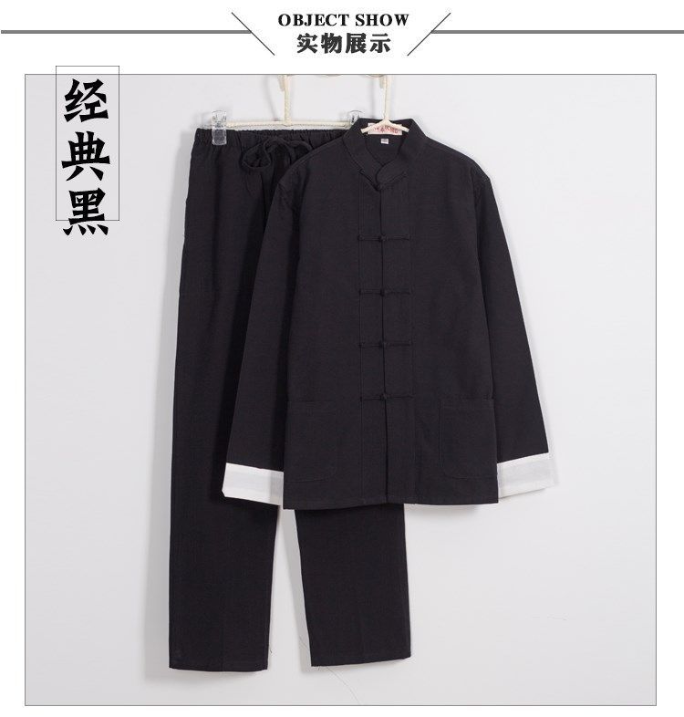 Традиционный китайский костюм Тан из чистого хлопка для мужчин среднего и пожилого возраста в китайском стиле для папы, дедушки, улучшенный комплект ханьфу в китайском ретро-стиле.