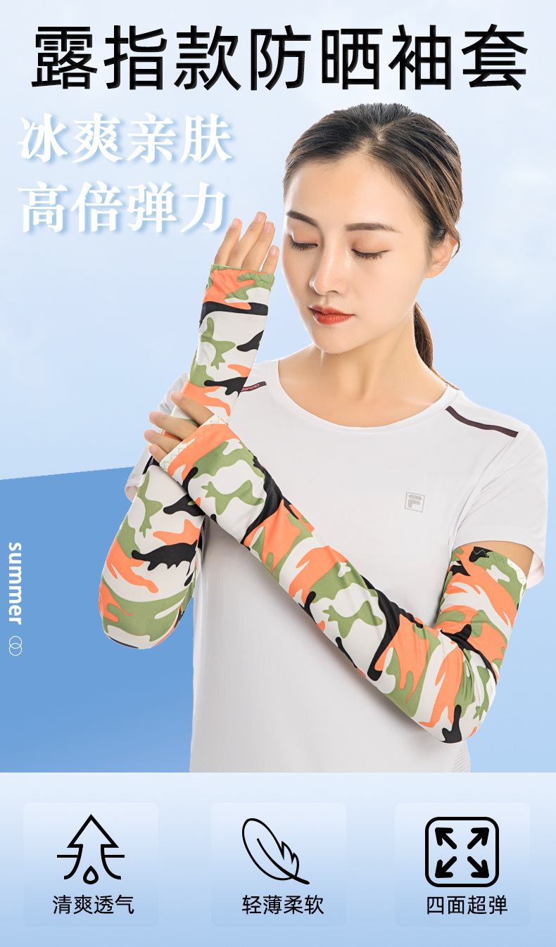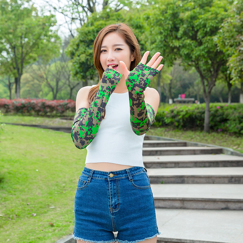 Трансграничные камуфляжные рукава из ледяного шелка, солнцезащитные рукава, летние рукава для велоспорта на открытом воздухе, 53 см, спортивные рукава для пальцев, ледяные рукава для мужчин и женщин