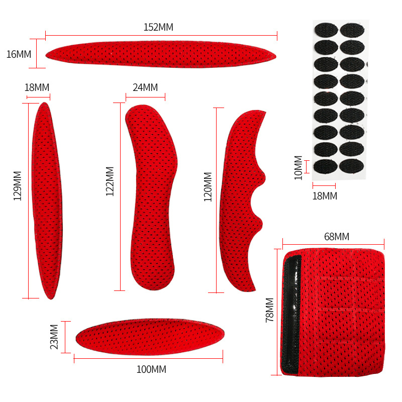 Красный (подкладка); Красный (подкладка + липучка); Липучки; Красный (подушка для подбородка); Черный (подкладка + липучка); Синий (на подкладке); Синий (подкладка + липучка)