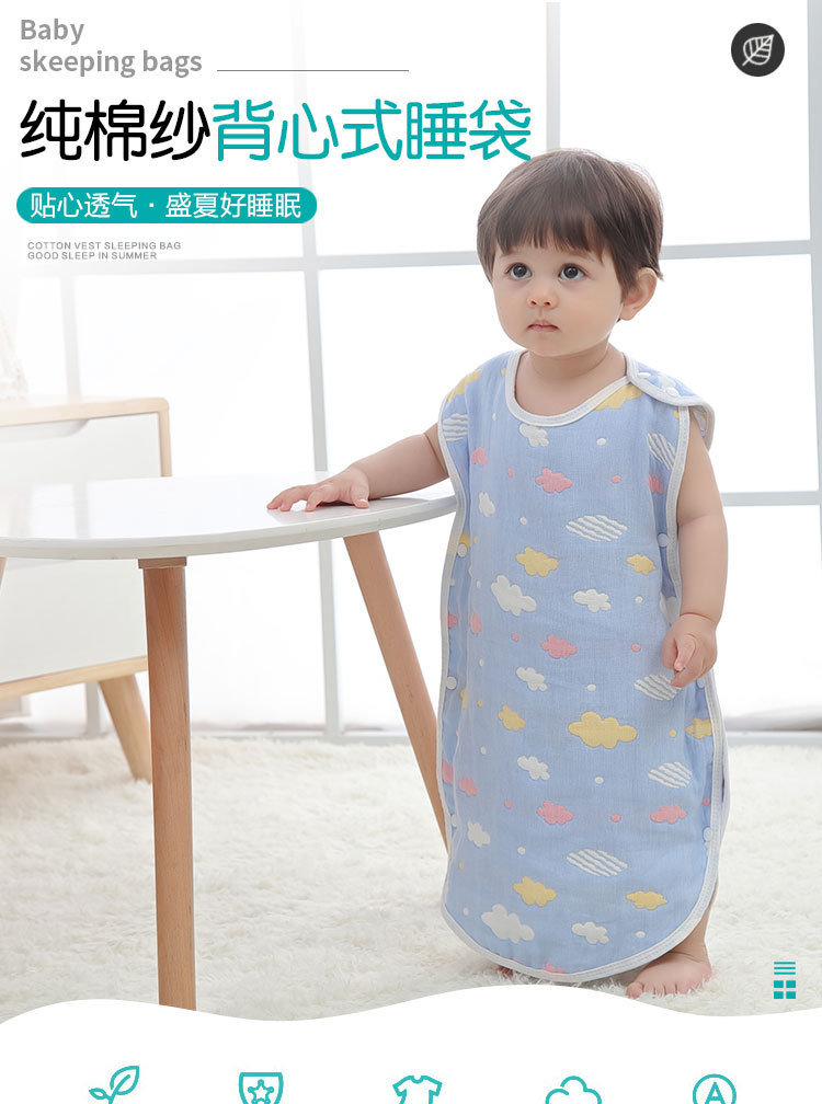 Спальный мешок из чистого хлопка шестислойный марлевый Детский противоударный жилет весна-осень лето тонкий комнатный с кондиционером против холода