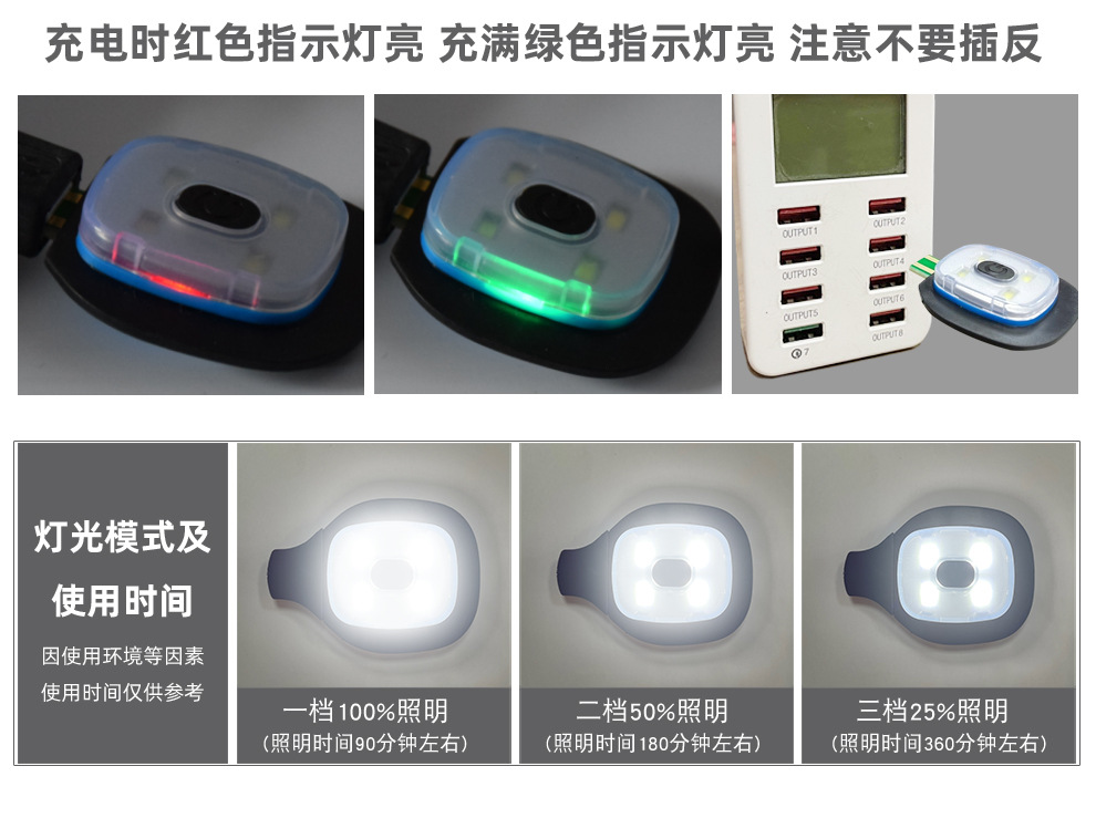 USB перезаряжаемая шляпа, красная и белая трехскоростная светодиодная лампа для шляпы, рюкзак, вязаная шапка, аксессуары, уличная фара нажимного типа