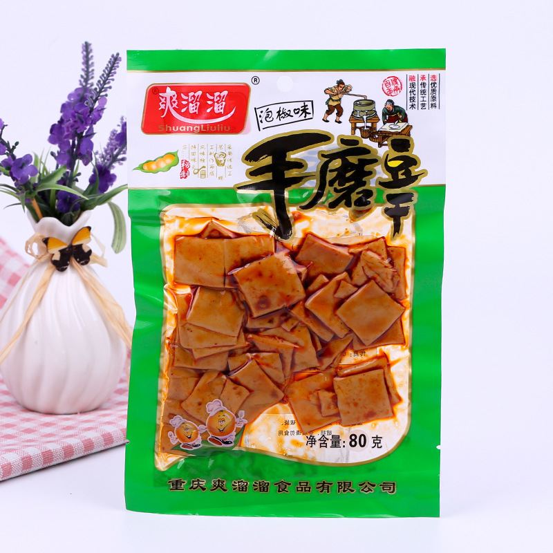 Острые закуски из тофу Shuangliu Liu Chongqing, 80 г, оптом, в пакетах, с маринованным перцем и сичуаньским перцем