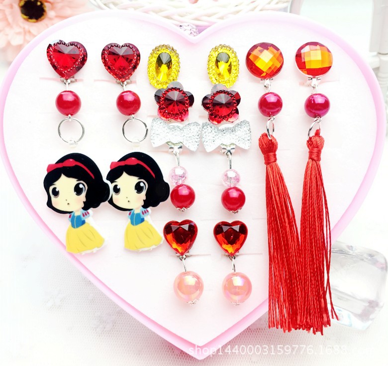 Детский зажим для ушей без отверстия для ушей акриловые Мультяшные серьги с кисточками любовь Подарочная коробка костюм (все серьги)