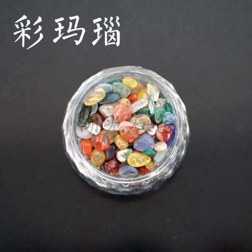 规格:每颗的大小约5-9mm不等不规格形状,其中绿松石、各种琉璃是仿的,其他为天然的!