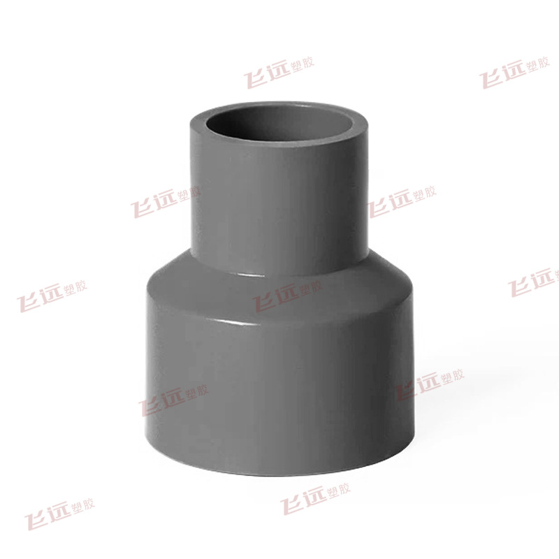 Редукционное прямое соединение из ПВХ большого и малого диаметра для переходных фитингов для водопроводных труб, прямые клейкие пластиковые фитинги серого цвета.