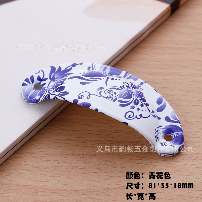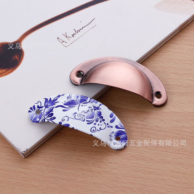 圆形陶瓷单孔拉手田园家具橱门外贸陶瓷复古拉手贴花把手美式拉头