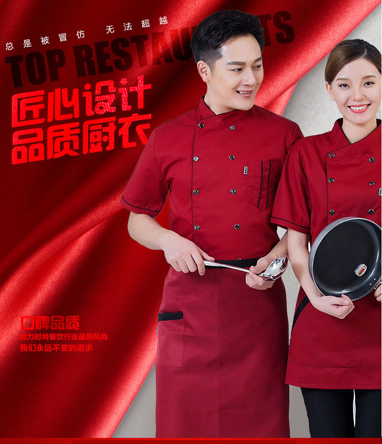 Шеф-повар костюм с короткими рукавами Летняя дышащая кухня столовая после кухонной одежды