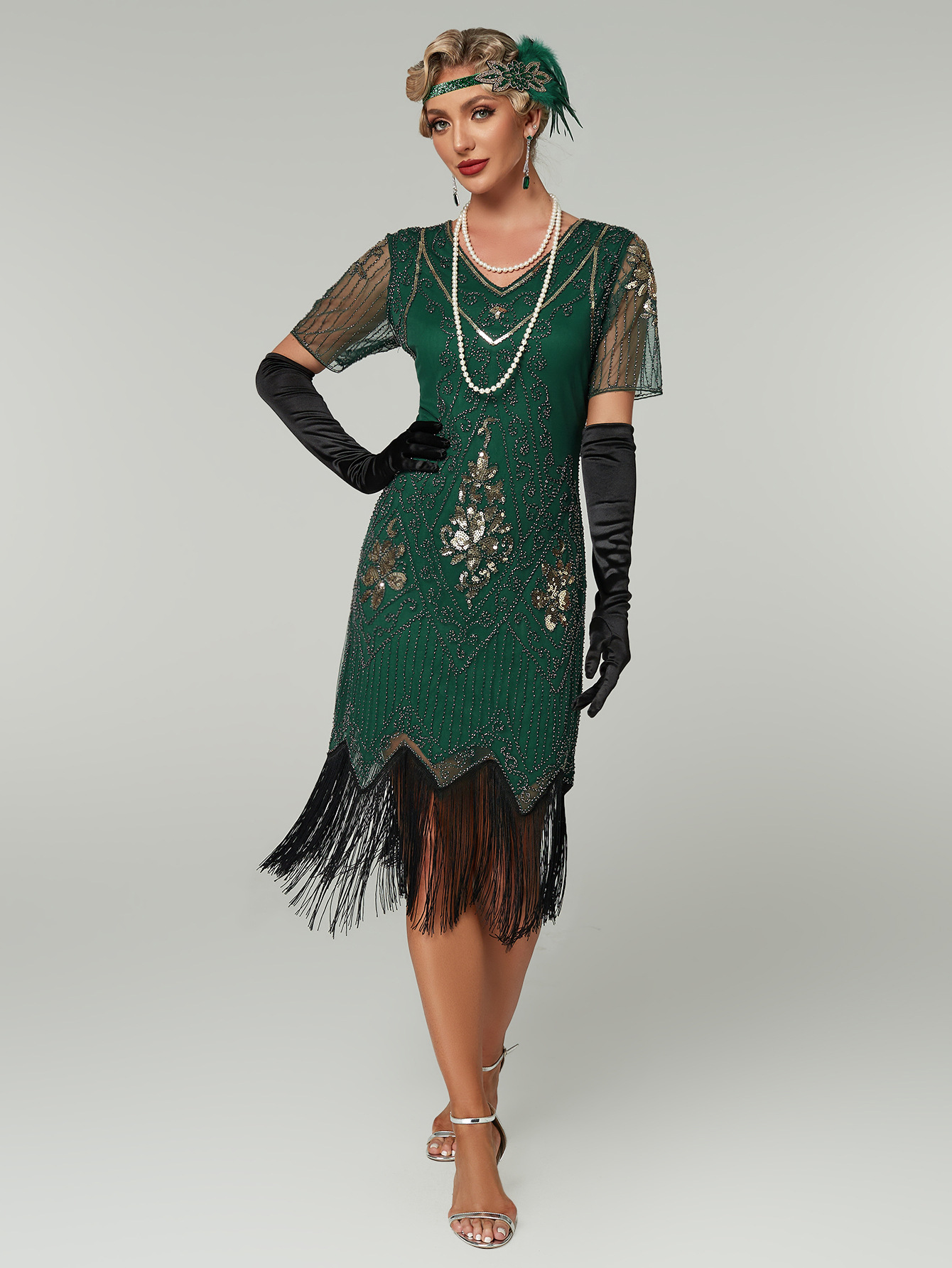 Горячая распродажа европейской и американской внешней торговли высокого класса Amazon блестками платье костюм 1920 винтажное платье с блестками