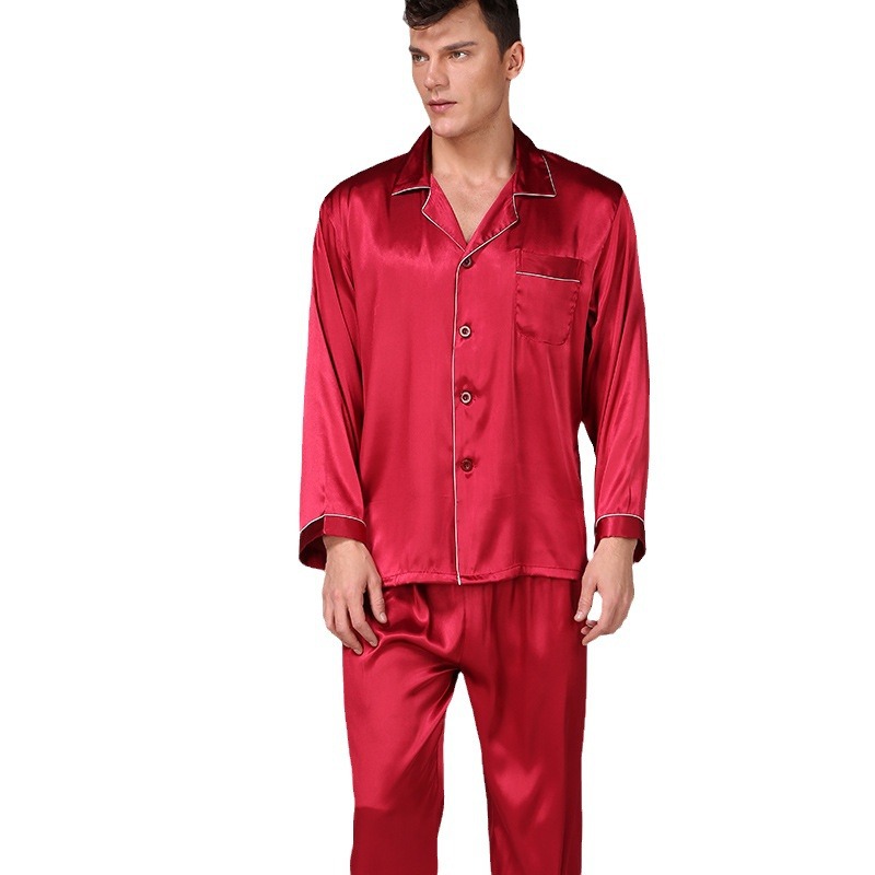 Трансграничная черная шелковая ледяная пижама мужской летний длинный рукав сплошной цветной костюм летний большой размер внешней торговли мужская домашняя одежда