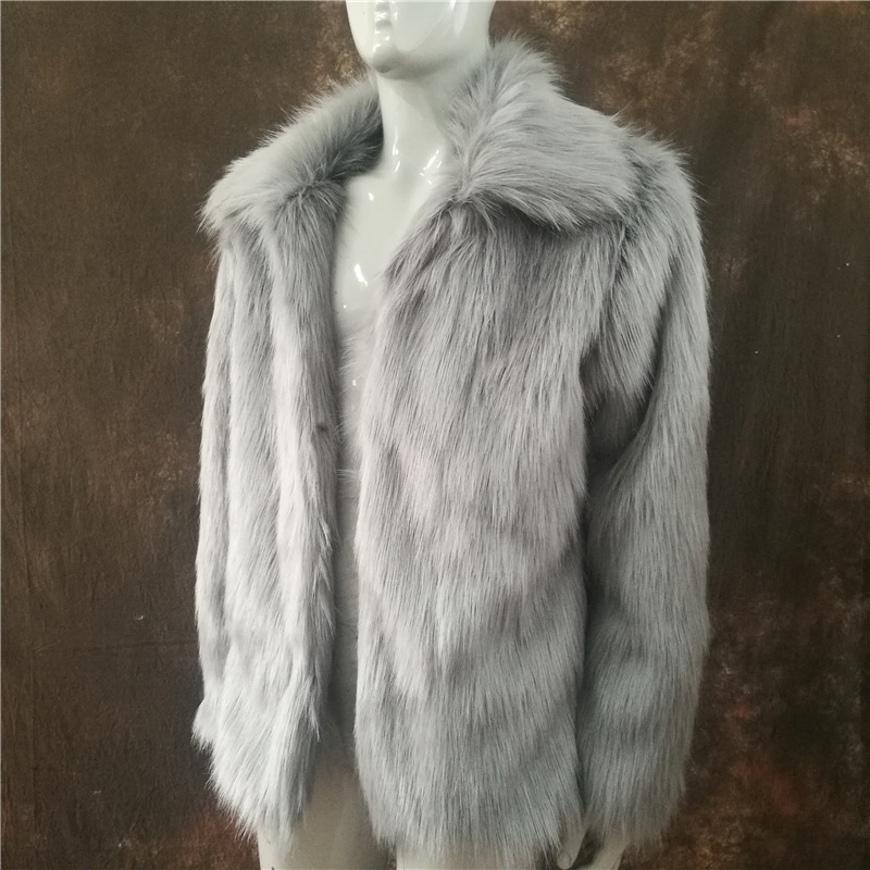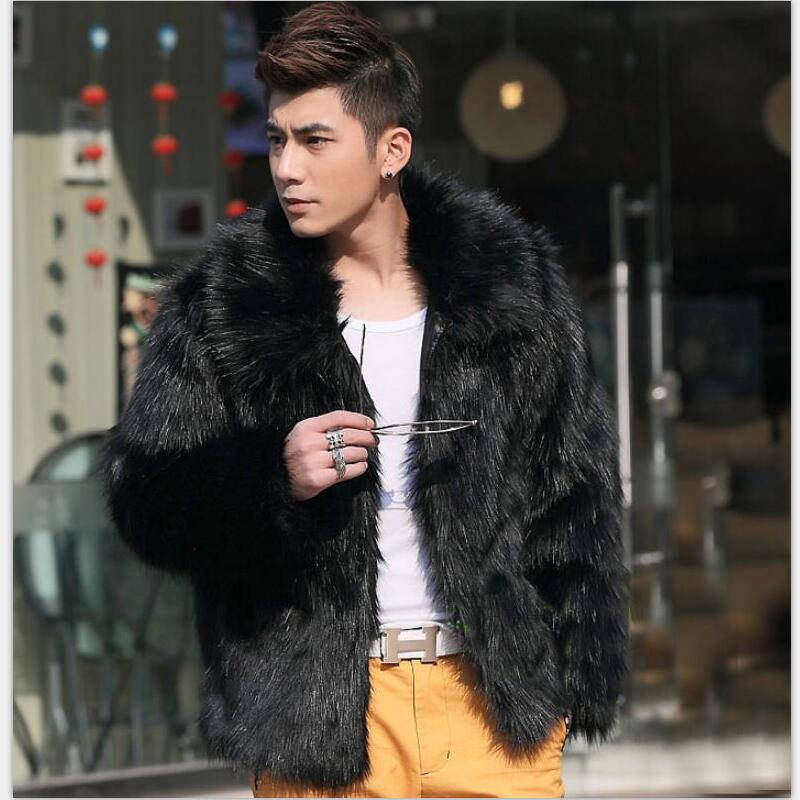 Amazon осень и зима Новое черное модное пальто из искусственного меха лисьего меха с лацканами мужское повседневное тонкое пальто