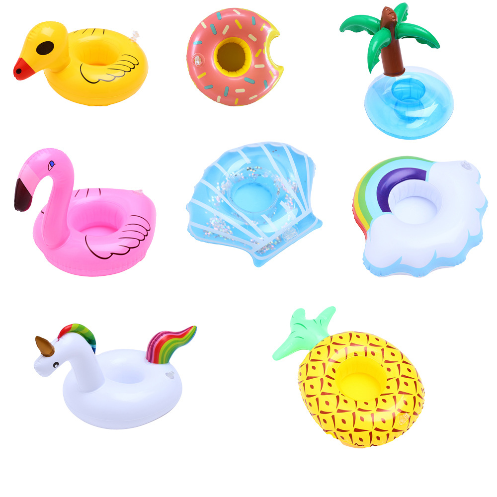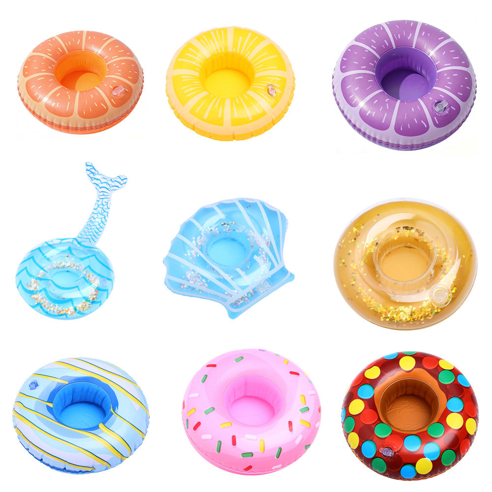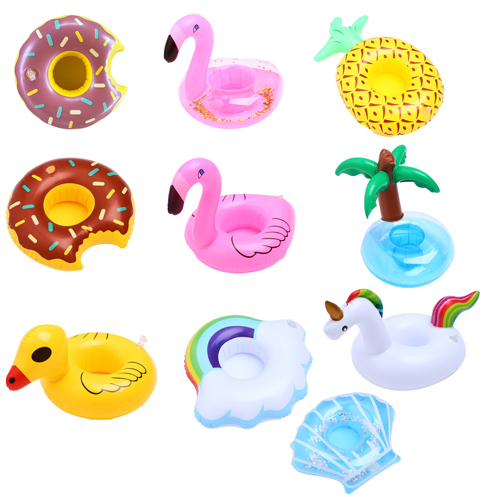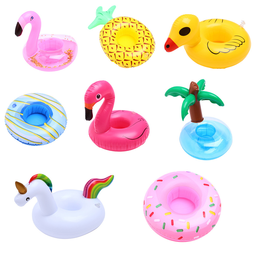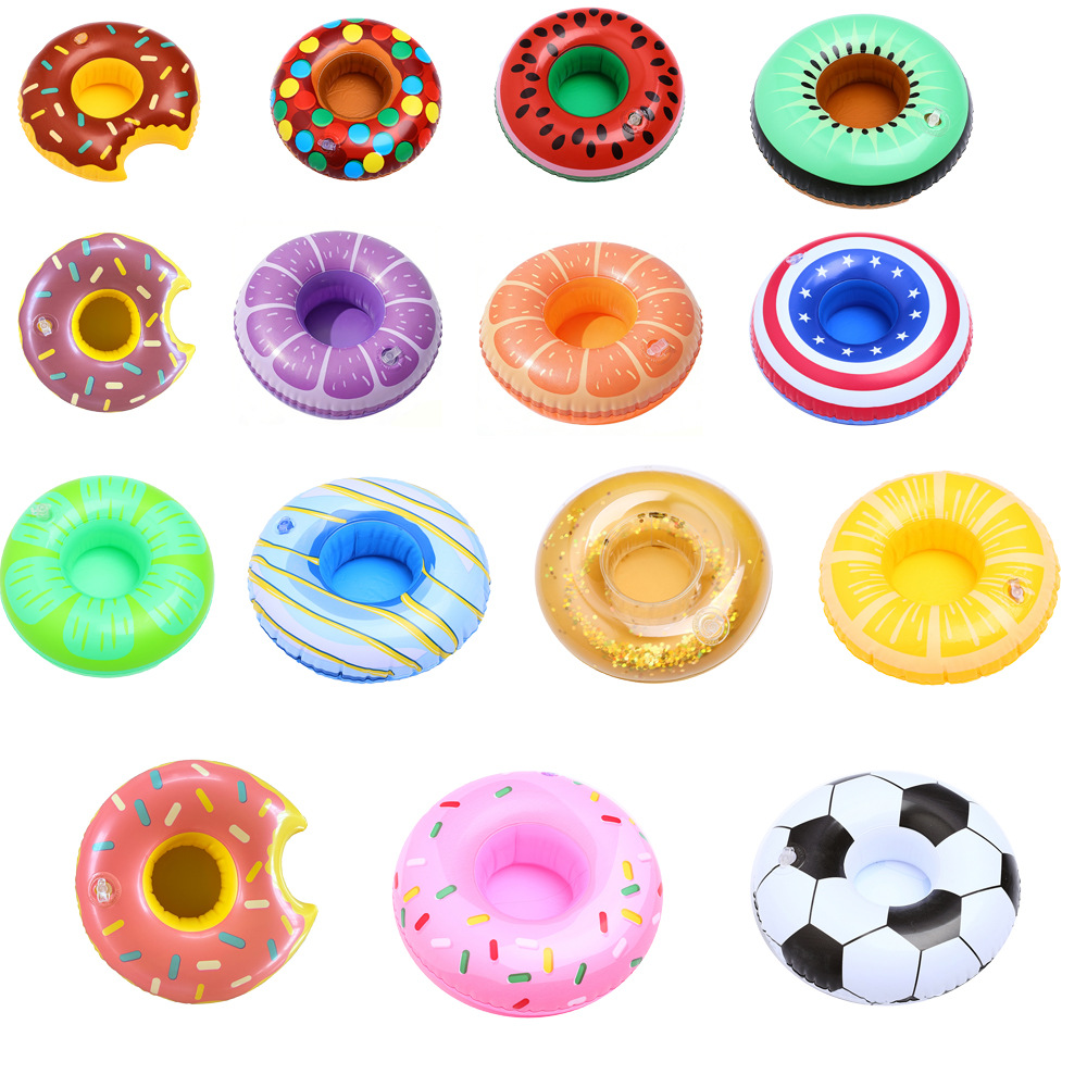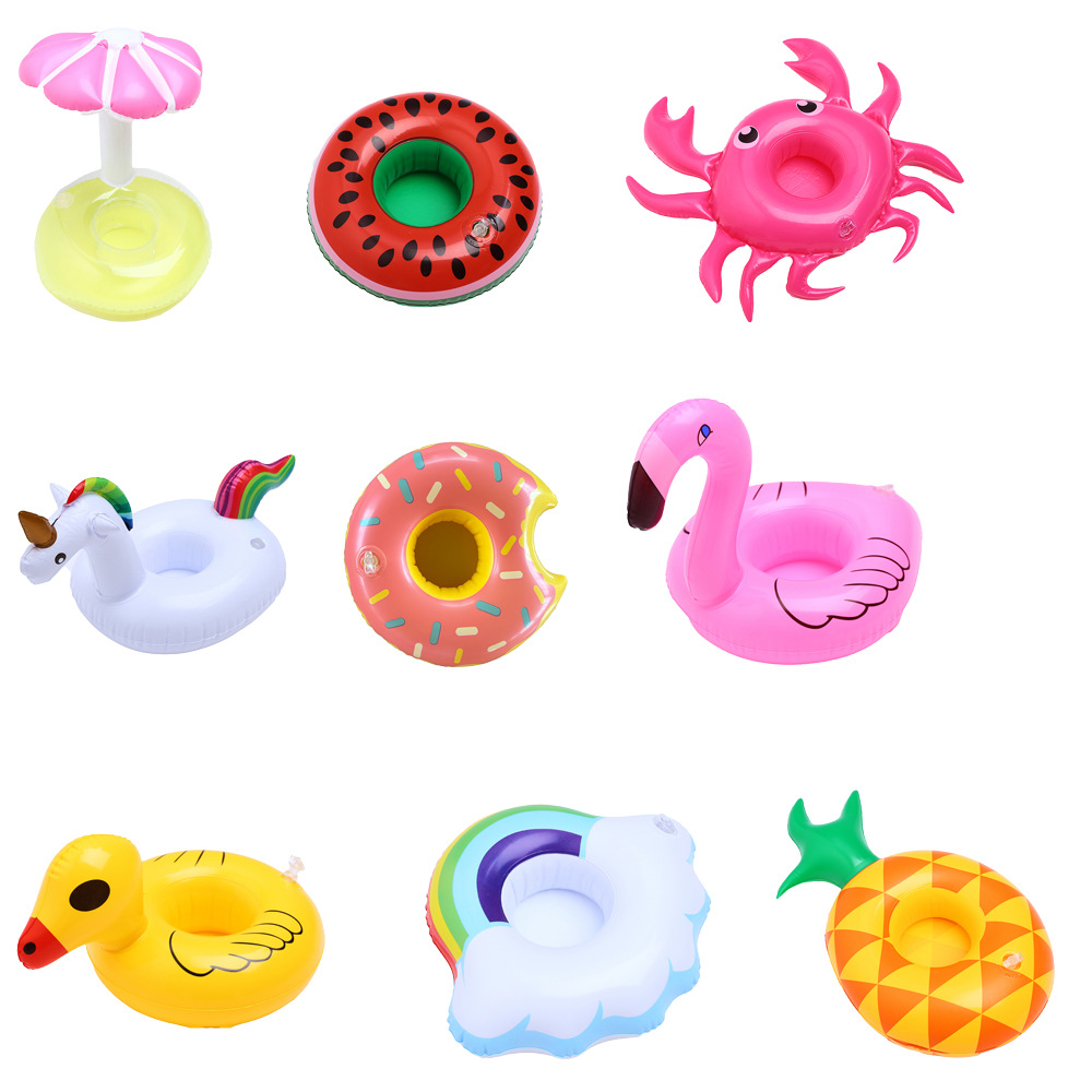 В наличии Поставка надувной фламинго пончик лимон арбуз ананас Краб любовь подстаканник надувная подставка для воды