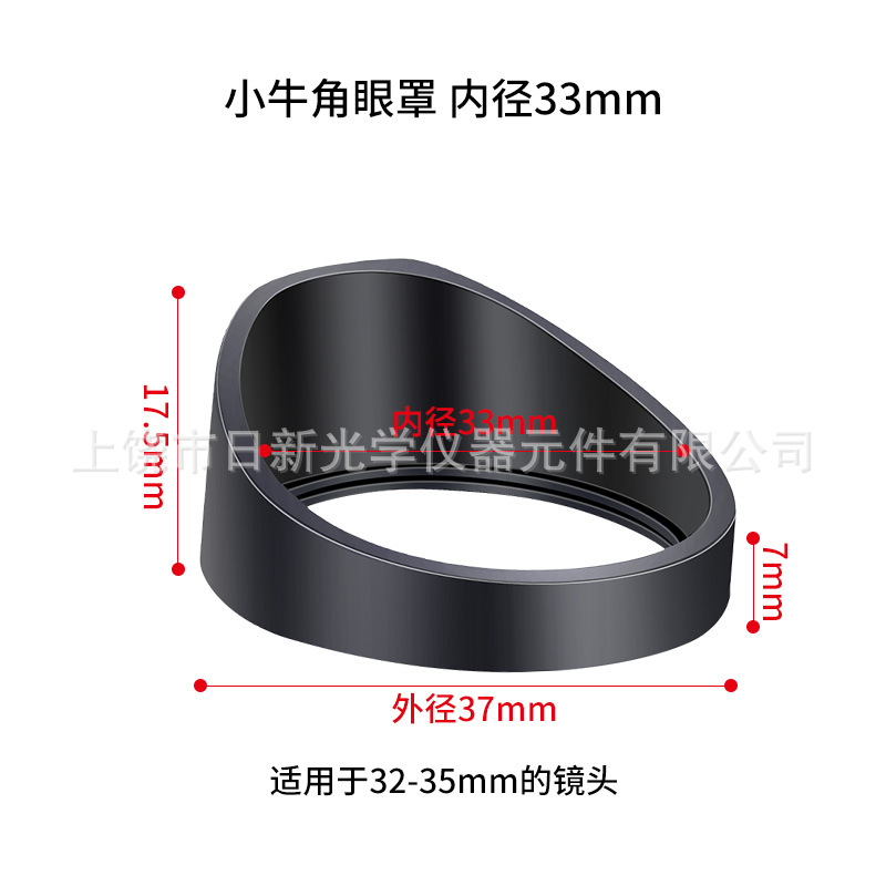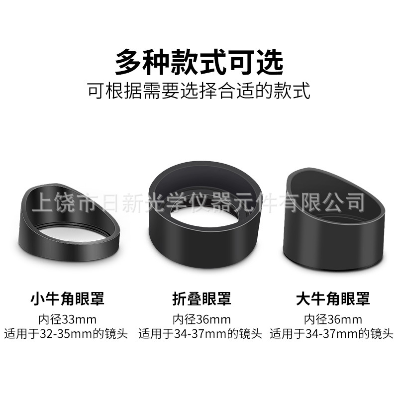 A款的:不可折叠牛角眼罩,内径为33mm(要接入镜头观察端的地方)。此款适用于32-35mm的显微镜目镜和望远镜及其他镜头等。