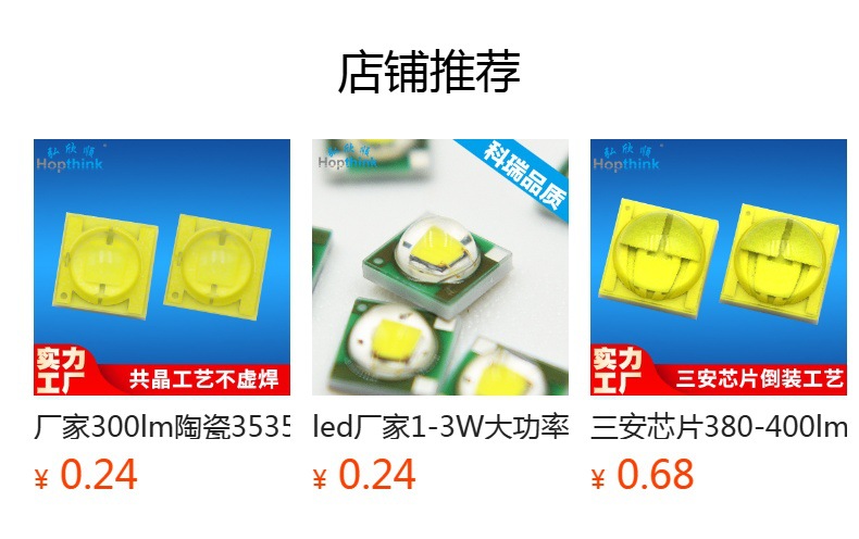 3W 130-140lm; 3W 140-150lm; 5W 300-320lm (оксид алюминиевая подложка); 5W 300-320lm (подложка из нитрида алюминия); 5W дисплей 95 (подложка из нитрида алюминия); 5W золотой световой палец 95 (азотированная алюминиевая подложка); 10W 1000-1200lm
