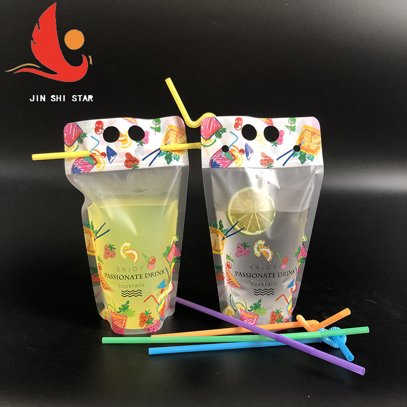 Пластиковые напитки Самостоятельная сумка ПЭТ матовая прозрачная двойная пористая сумка для напитков Сумка для напитков одноразовая сумка для сока