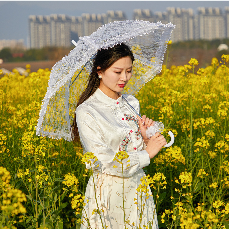 Кружевной зонт для свадьбы, маленький кружевной зонтик, реквизит для косплея, зонтик для детских выступлений, танцевальный зонтик в богемном стиле
