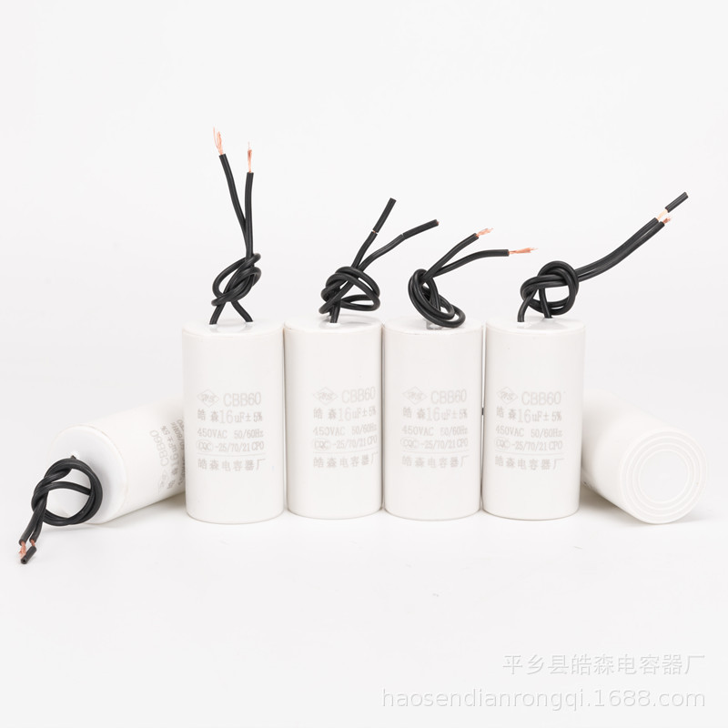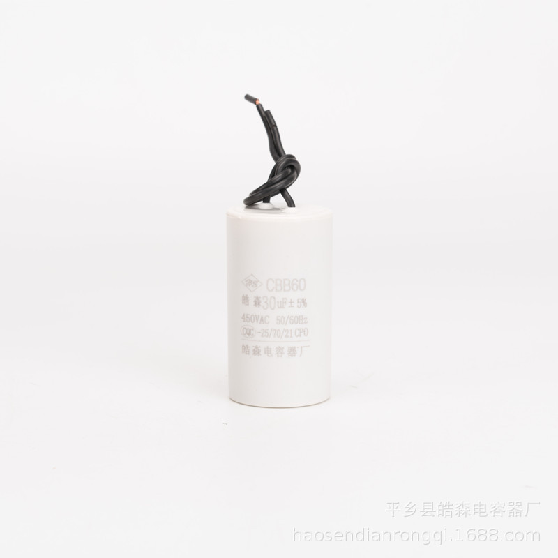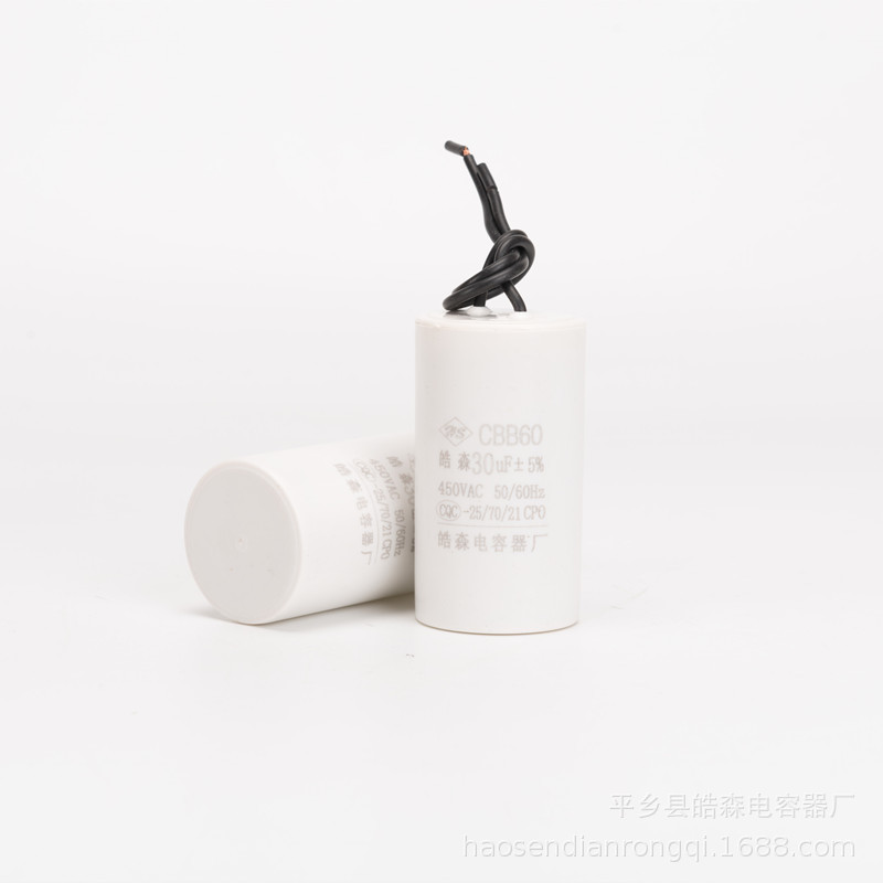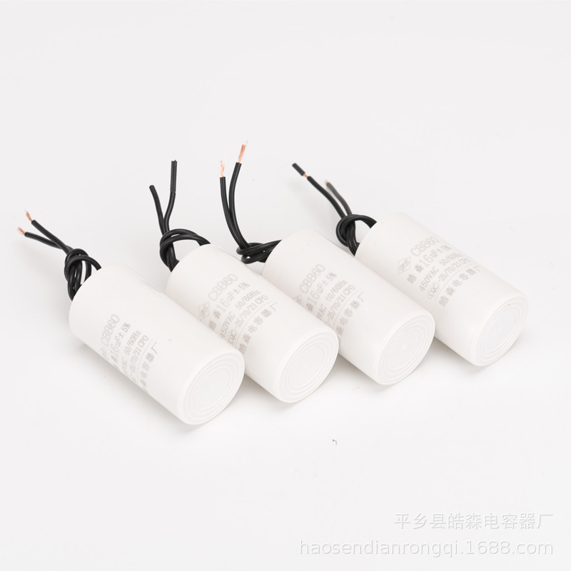 主要用途:交流单向电机配套使用,帮助电机启动。广泛应用于微型水泵、洗衣机、单向电机、空压机中作启动和运转电容器