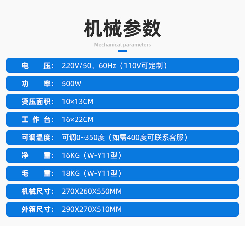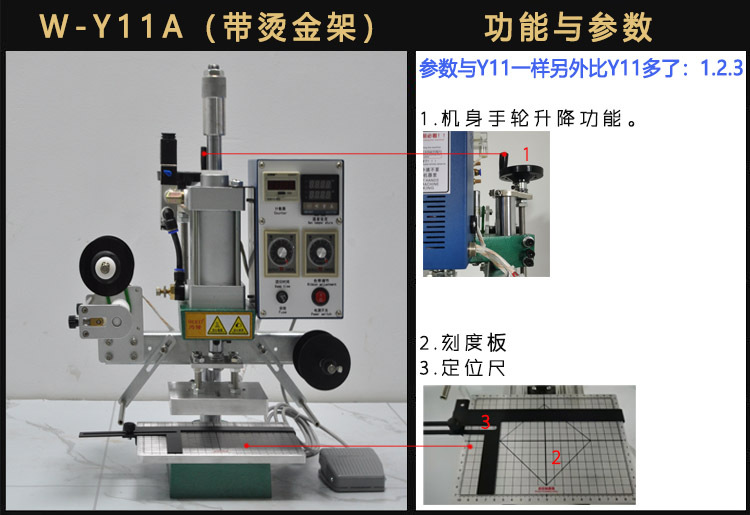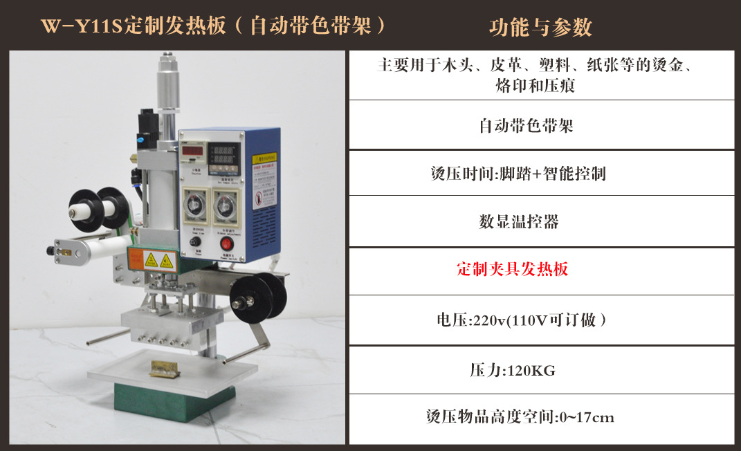 Тип W-001 (без держателя ленты); Тип W-A01 (без держателя ленты); W-B01 (без держателя ленты); W-B02 (ручная ленточная стойка); W-Y11 (электрическая автоматическая ленточная стойка); W-Y11S индивидуальная нагревательная пластина для приспособления; W-Y11A; W-Y21 (очень большой размер); аксессуары