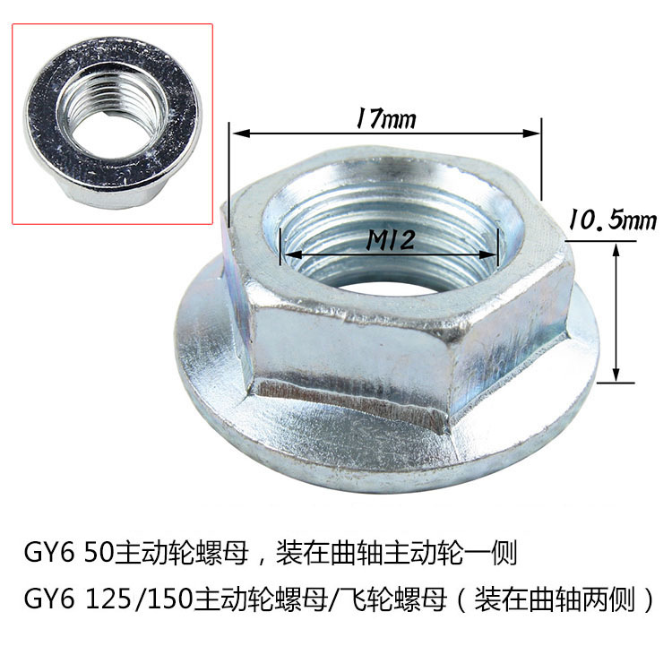 商品名称:踏板车GY6发动机皮带轮锁紧螺帽