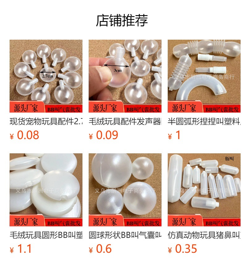 专业生产玩具配件 :大小规格艺术眼睛、卡通眼睛、全黑艺眼、吸盘、大小叫BB叫、活动眼睛、陶娃眼、各类玩具动物鼻艺嘴巴(三角鼻、半圆鼻、树熊鼻、鸡芯鼻、花鼻、植绒鼻等)灯泡扣塑料挂钩等配件