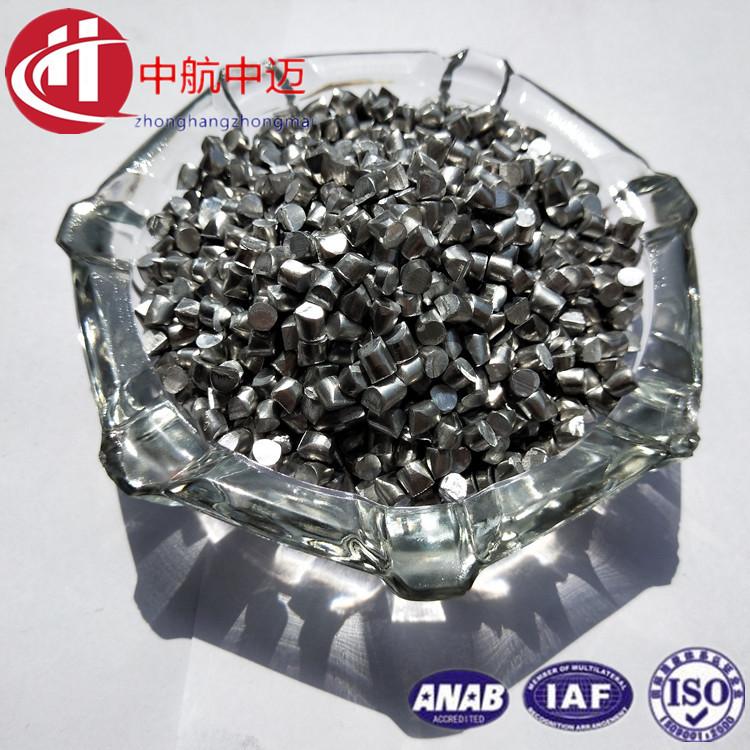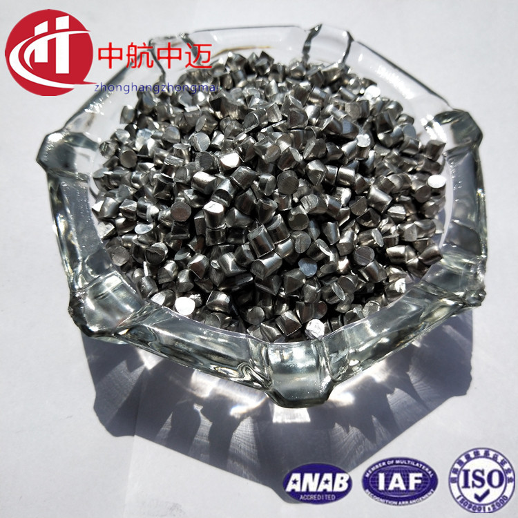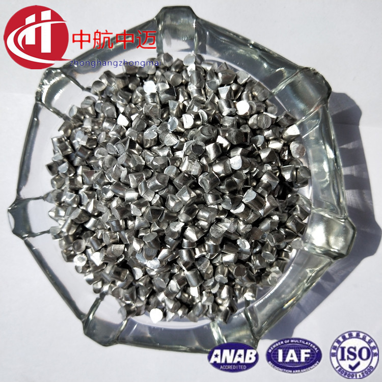铝粒又名铝丸、铝砂,铝粒采用含99%铝的铝锭反复拉丝、裁切、研磨等工艺精制而成。外观光亮、圆柱状、应用于铝、锌或薄壁工件的表面。