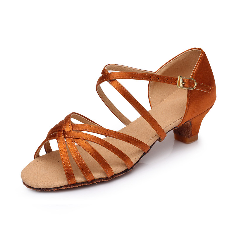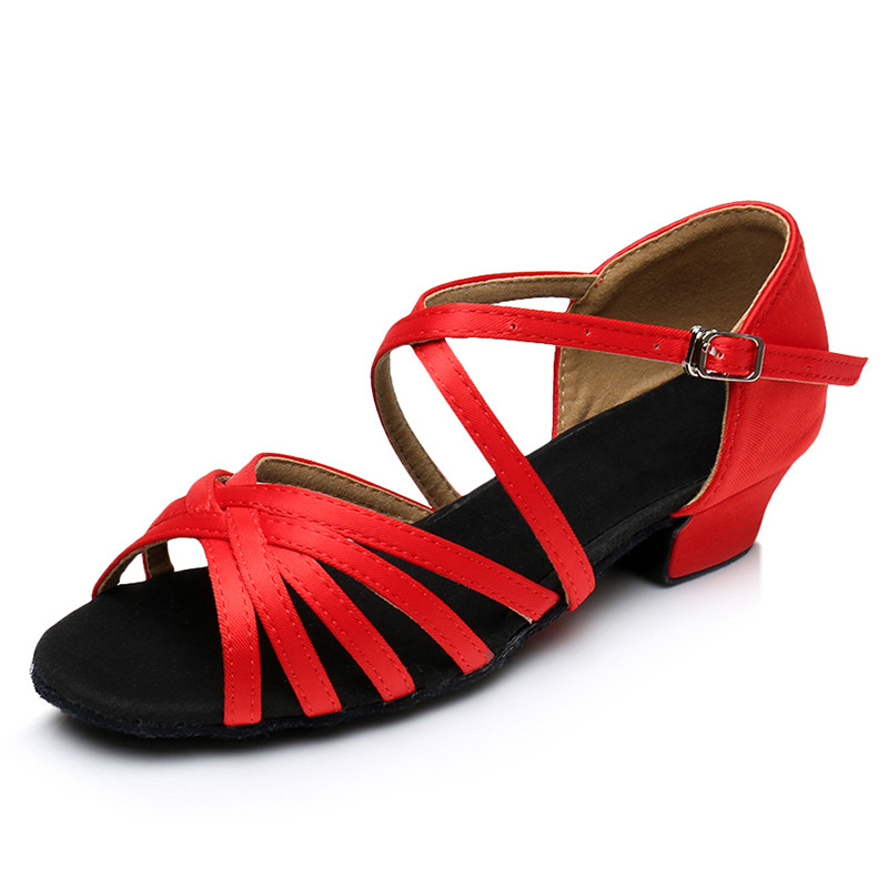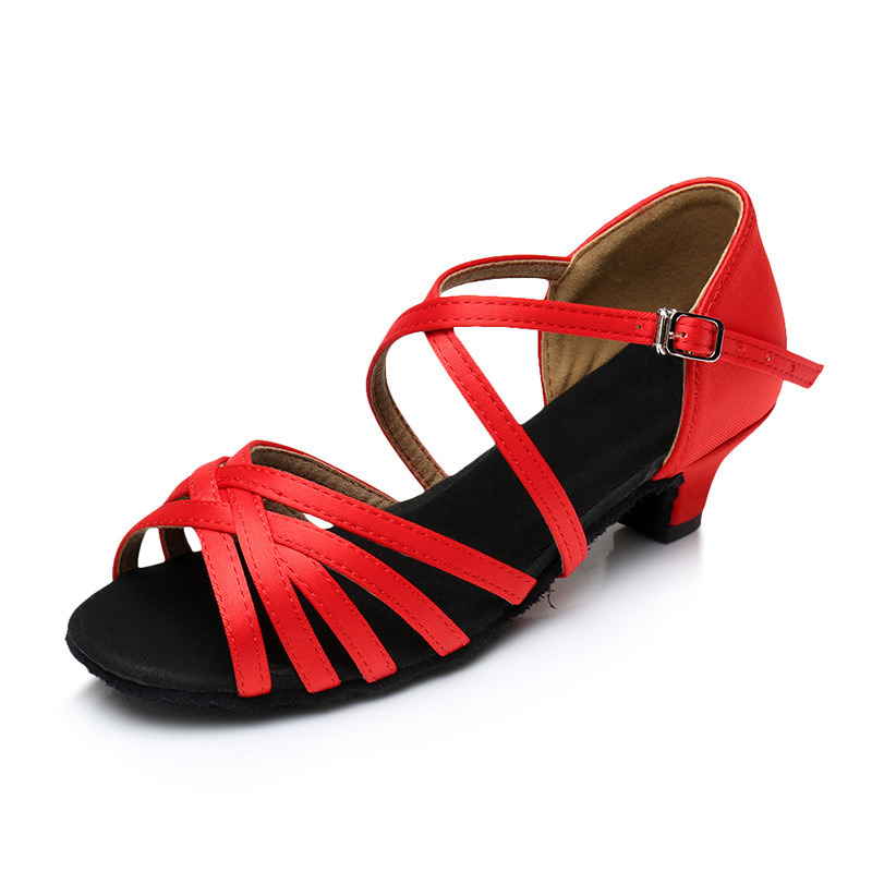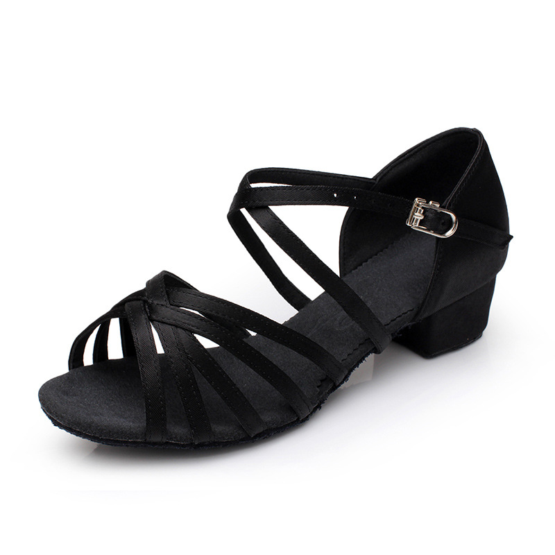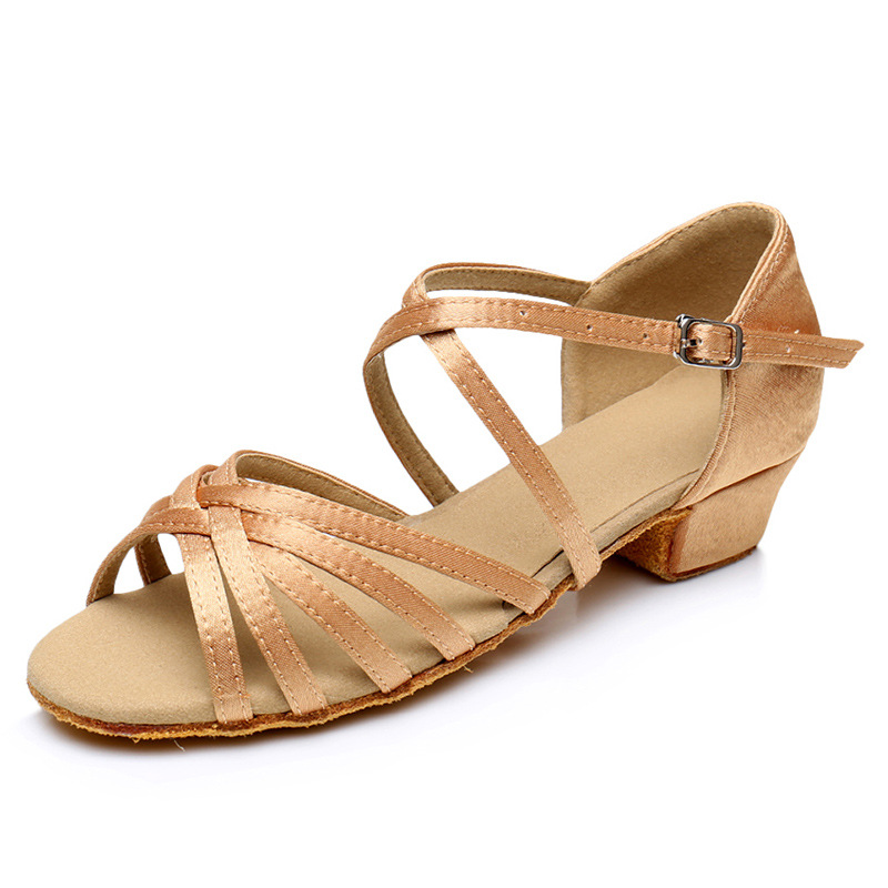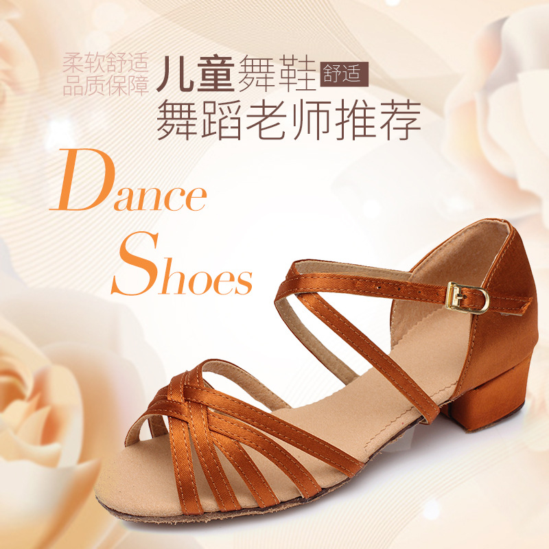 Цельная доставка Детская обувь для латинских танцев, атласная обувь для латинских танцев на высоком каблуке, детская обувь для танцев с мягкой подошвой, белые туфли для девочек