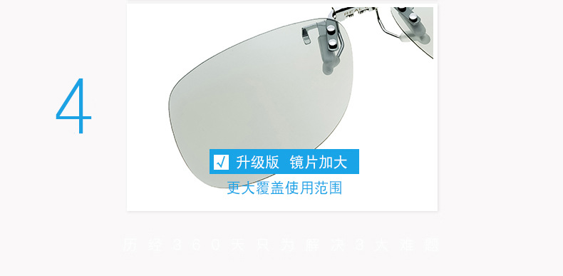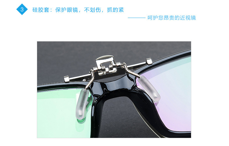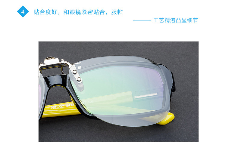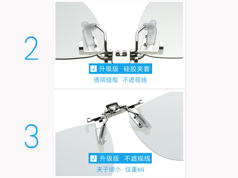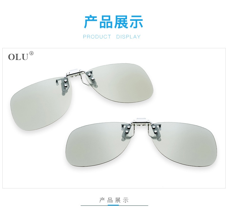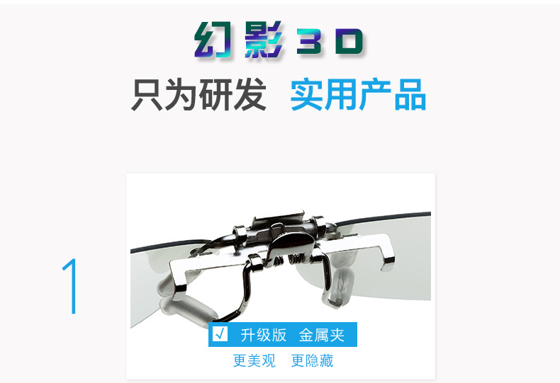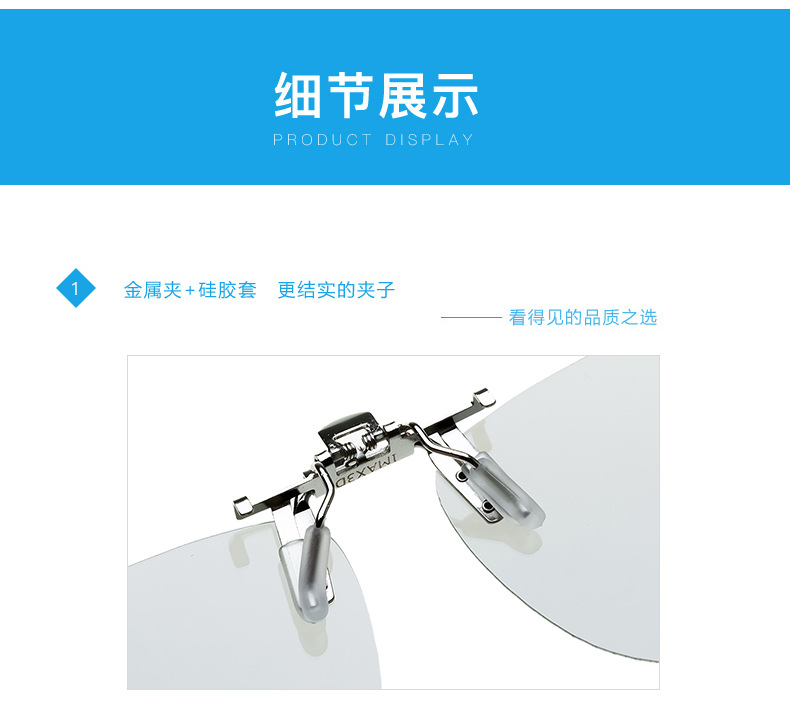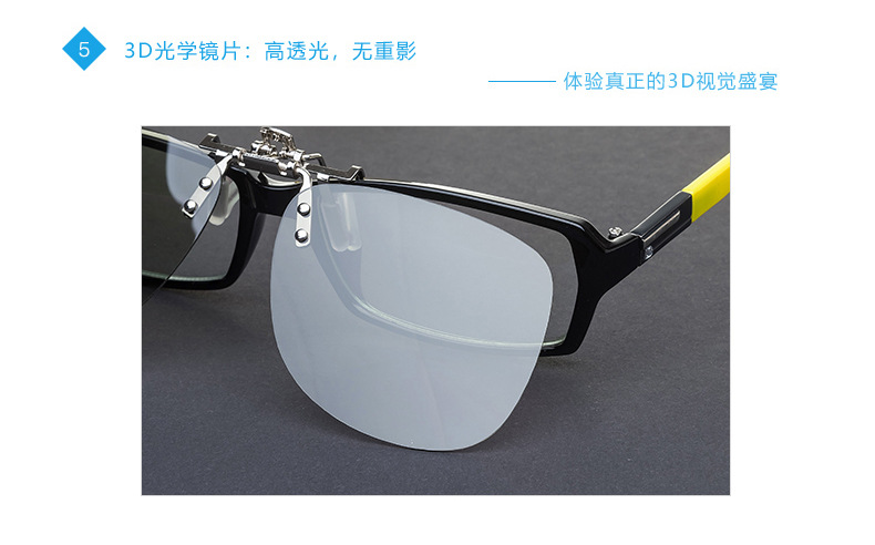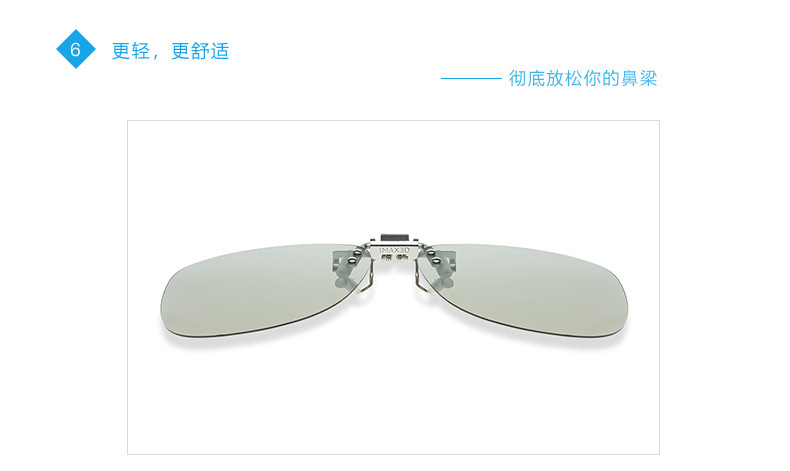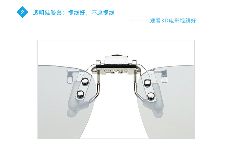 产品结构:不锈钢金属夹,加厚至0.72mmTAC偏光3D镜片,并作抗UV400处理,双面硬化TAC复合。