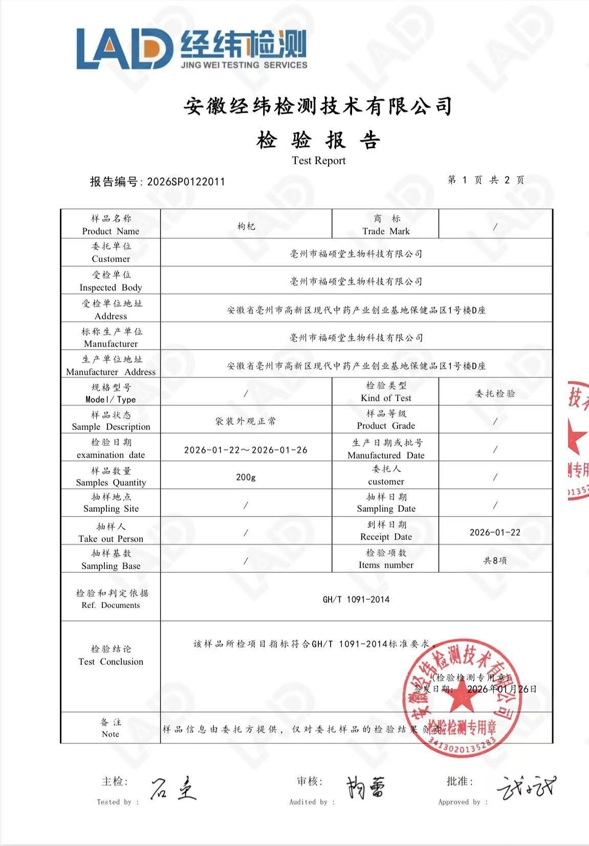 КО. биотехнологии Бочжоу фушутанг, Лтд.