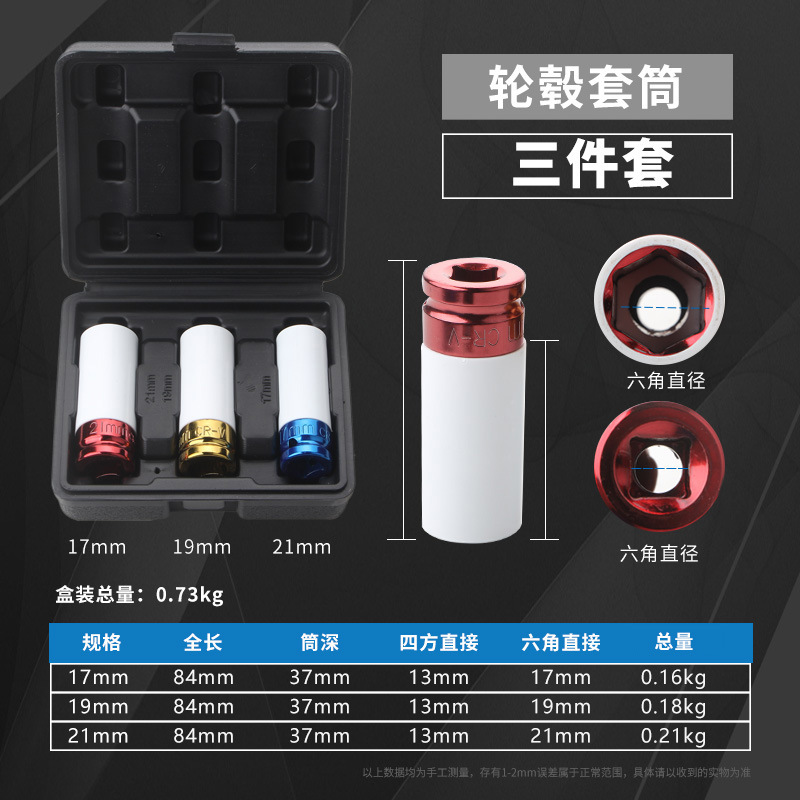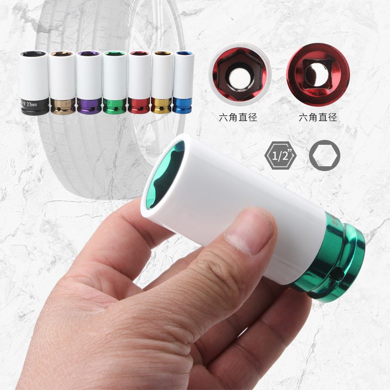 3件套1/2"轮胎螺丝套筒17 19 21mm 气动套筒彩色轮胎拆卸工具
