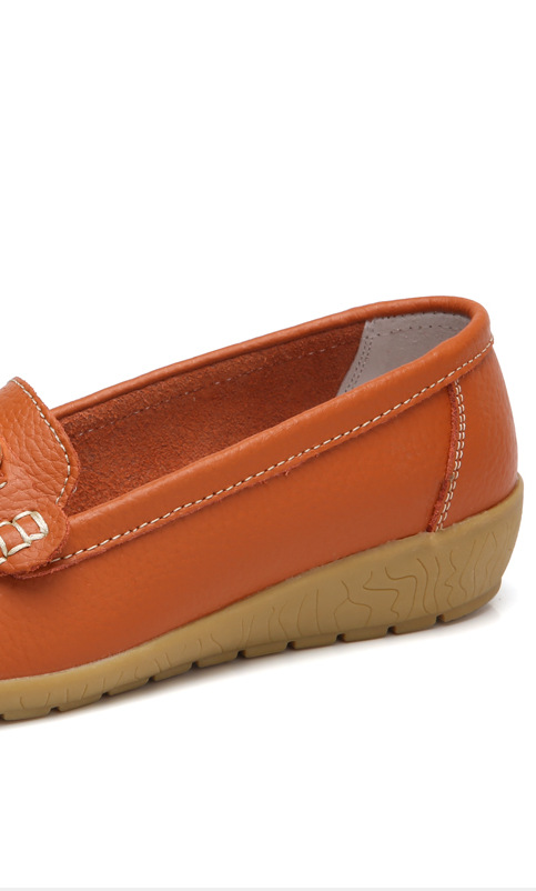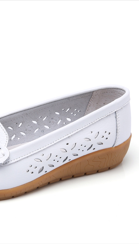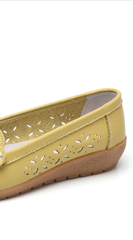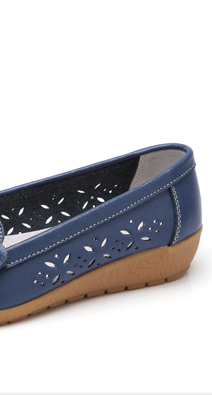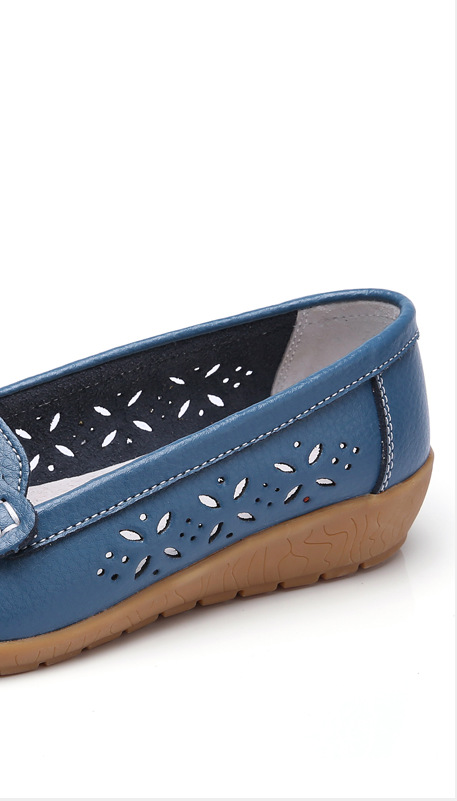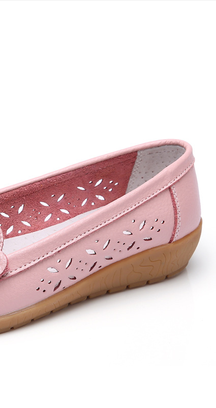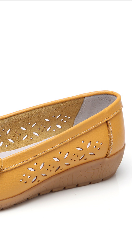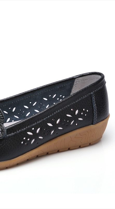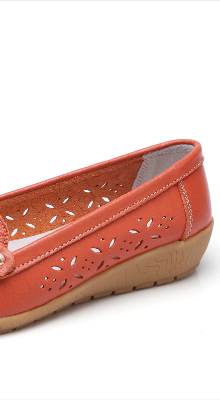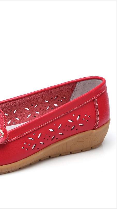 Летняя полая новая кожаная обувь Обувь для мам среднего и пожилого возраста Женская Однослойная обувь Обувь-бобы Женская обувь на танкетке с мягкой подошвой для женщин