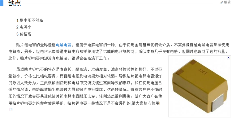 一般来说,在滤波和大功率充放电电路,必须使用ESR值尽可能低的钽电容器. 对于电路中存在的交流纹波过高而导致的电容器失效问题,很多电路设计师都忽略其危害性或认识不够. 只是简单认定电容器质量存在问题. 此现象很多.