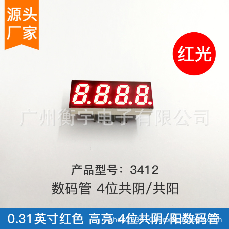 Цифровая трубка 0,31 дюйма, 4-разрядная, красная, 3412AS (общий катод), BS (общий анод), оптовая цена со скидкой
