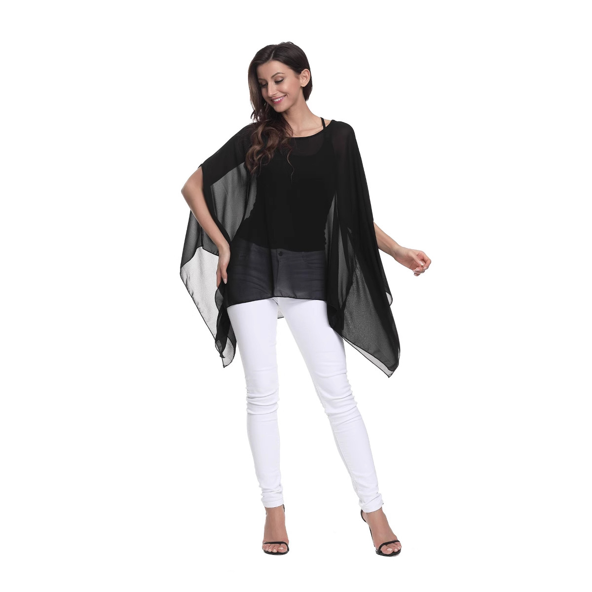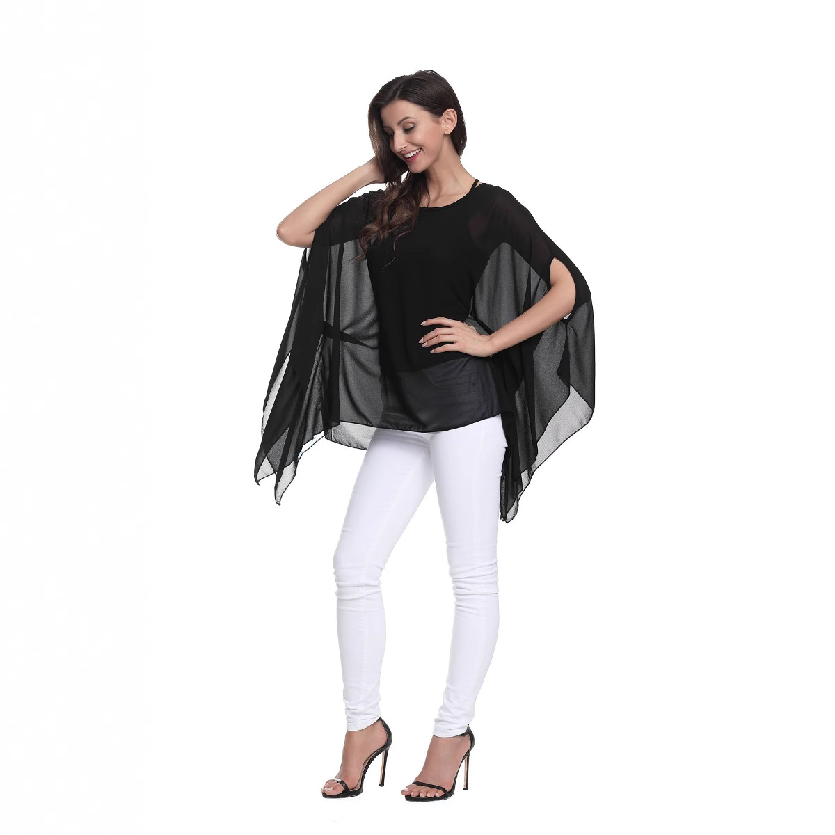 面料:高密雪纺 飘逸连体袖 自配里衬