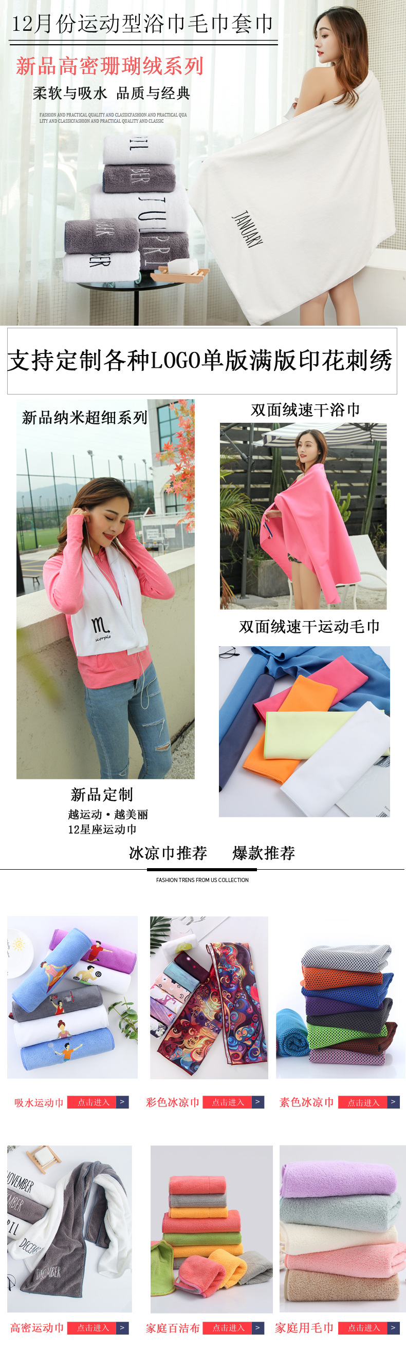 包装:(1)大包:毛巾1000-1200条/包;童巾3600-4000条/包;浴巾360条/包;(2)装箱:毛巾240条/箱;童巾800条/箱;浴巾60条/箱。