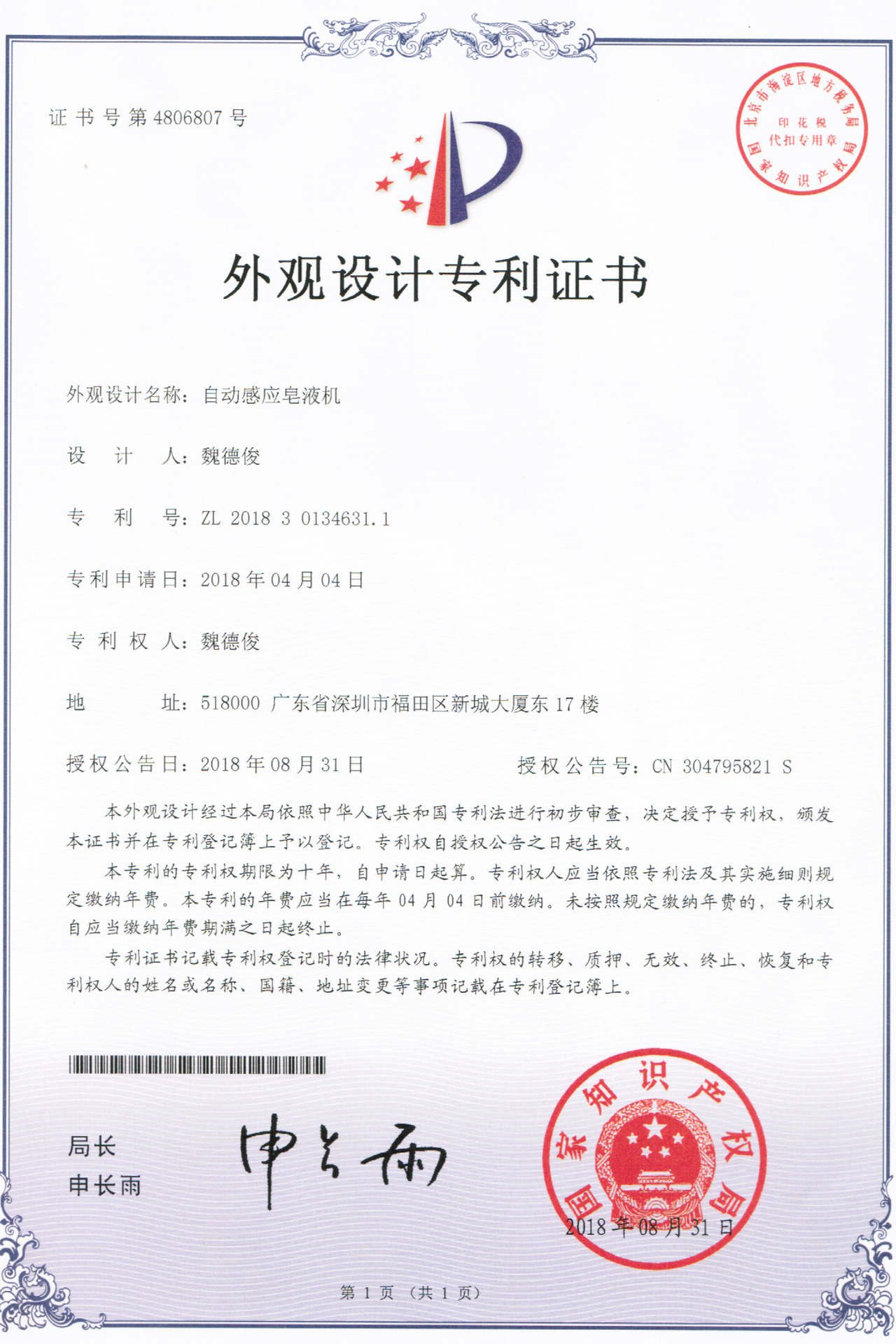 ZL 2018 3 0134631.1