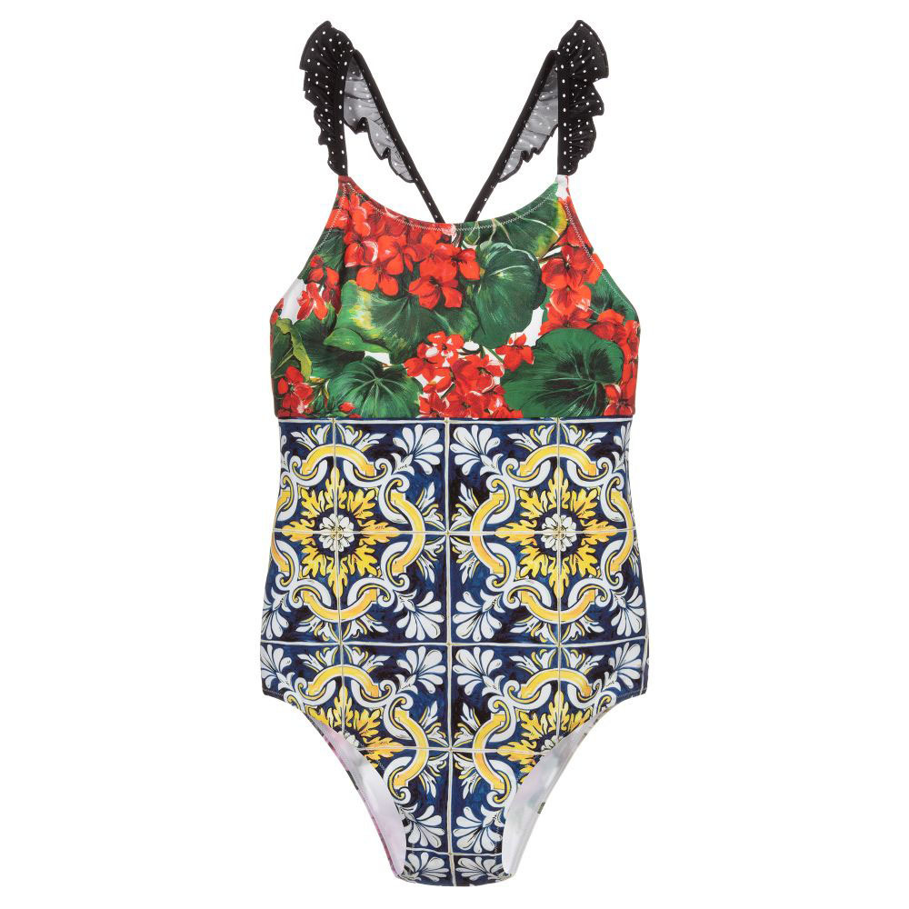 Итальянский цельный солнцезащитный купальник в горошек с принтом для детей и девочек, готовый завод X