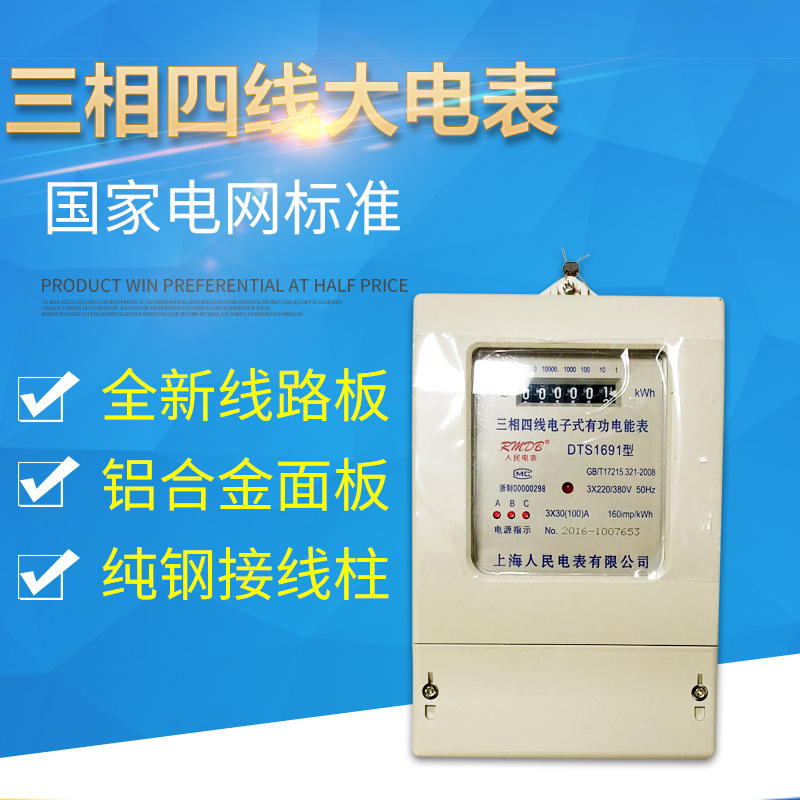Шанхайский народный трехфазный четырехпроводной Электрический счетчик Интеллектуальный электронный счетчик электроэнергии 380 В Трехфазный Электрический счетчик 100A