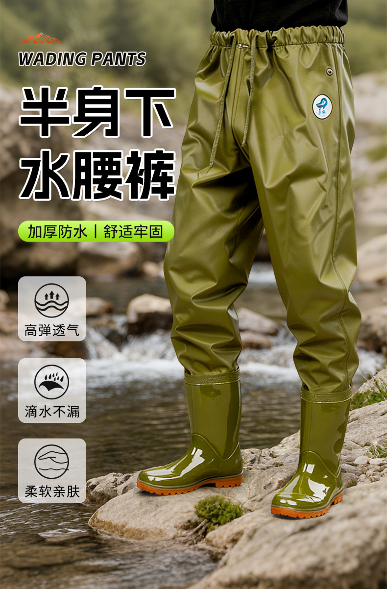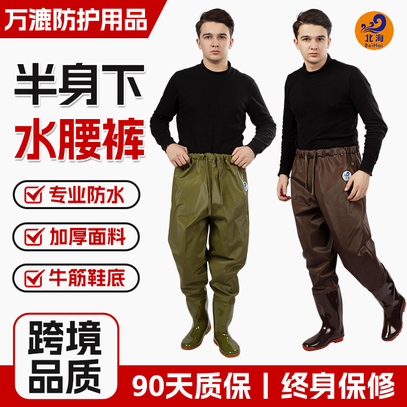 Beihai ПВХ рыболовные брюки трикотажные брюки для талии водонепроницаемые износостойкие вьючные брюки брюки дождевые брюки быстрая сухая и дышащая нижняя часть тела брюки