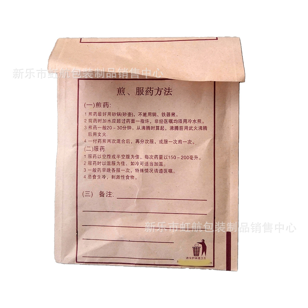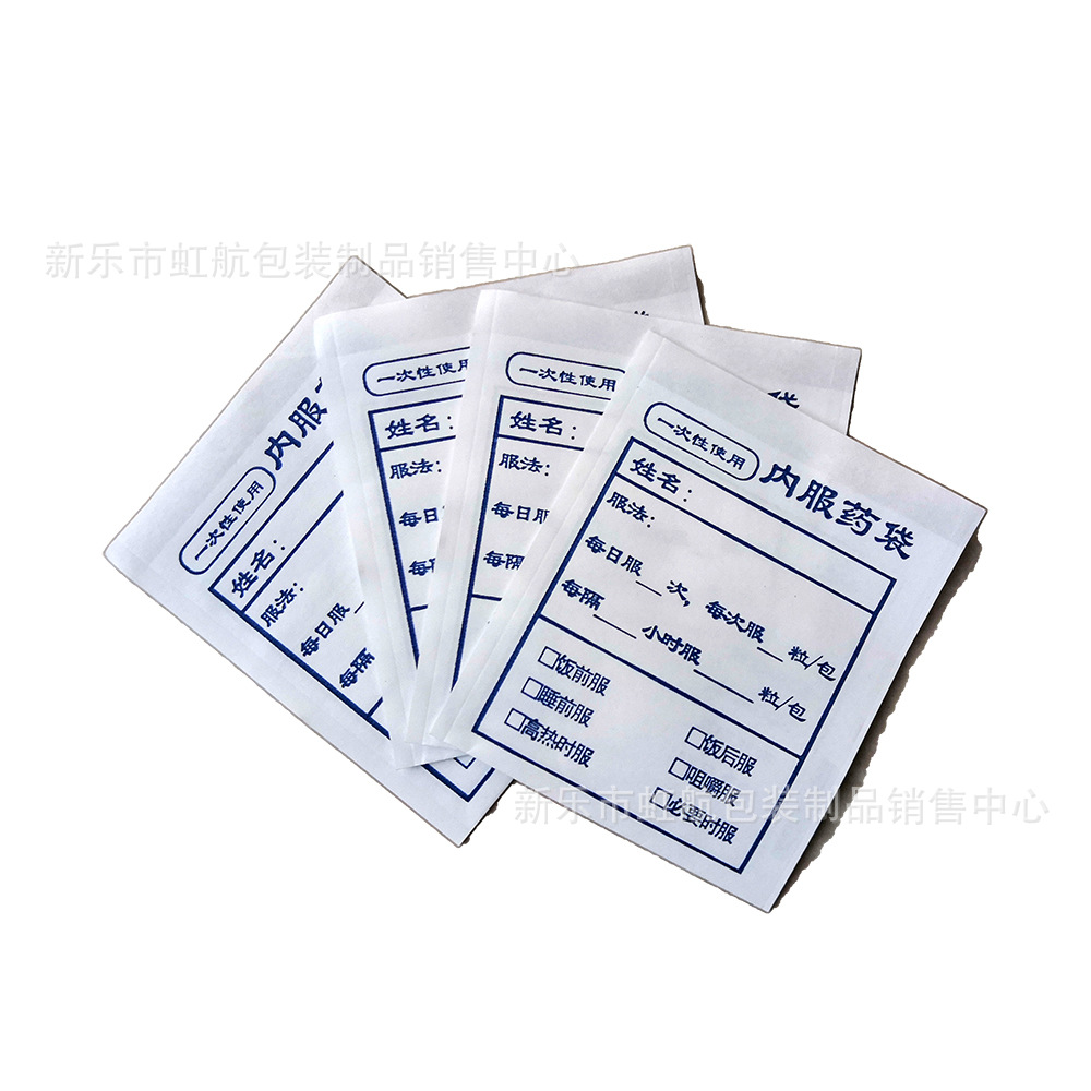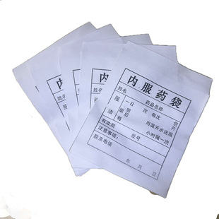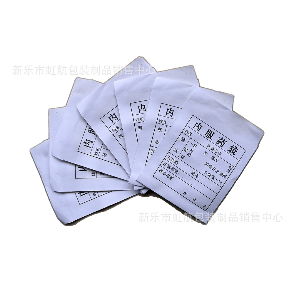 采用60克优质高白原浆纸制作,折叠后粘式药袋,容量大,宽90毫米,高120毫米(含约15毫米舌头)