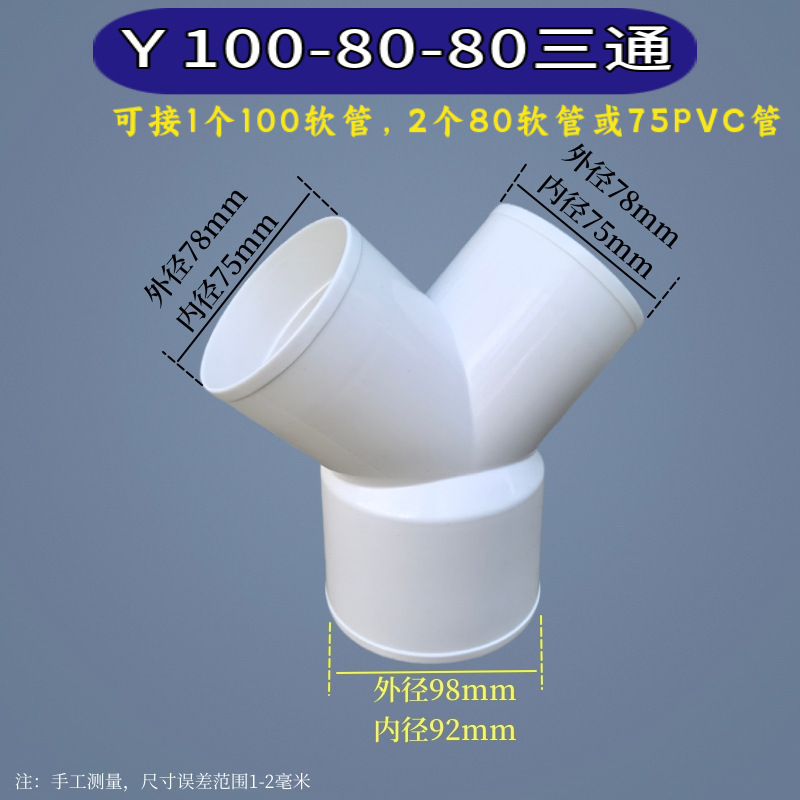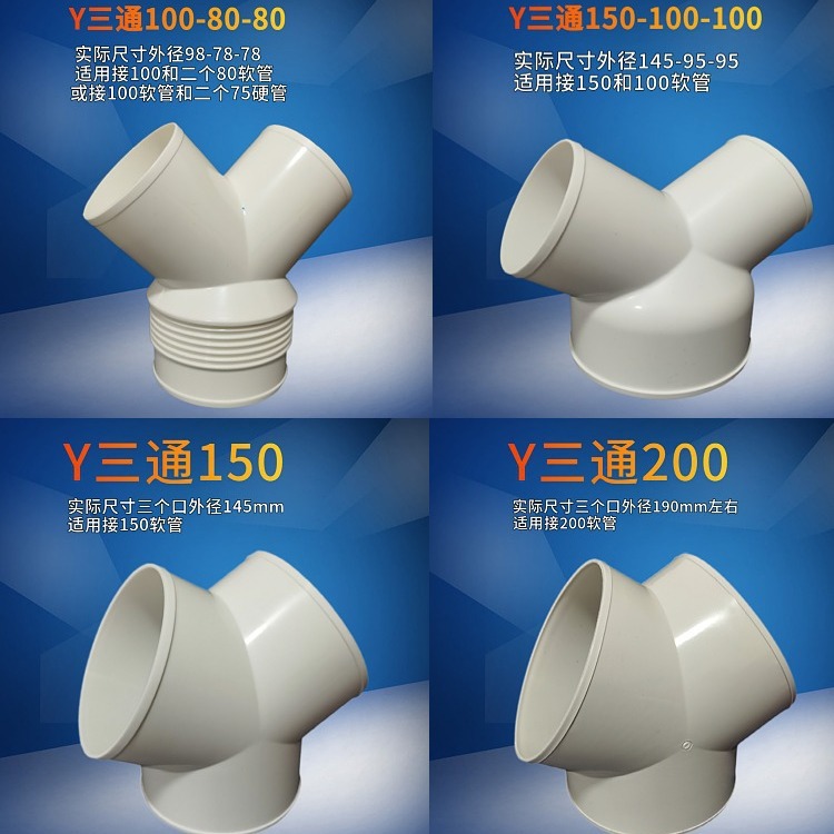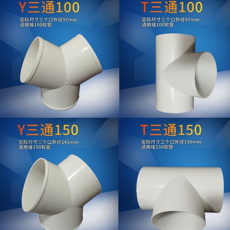 Y-образный тройник выхлопной трубы Y-образный Трехходовой воздуховод выхлопной трубы равного диаметра Соединение из ПВХ пластиковый вытяжной шкаф вентиляция