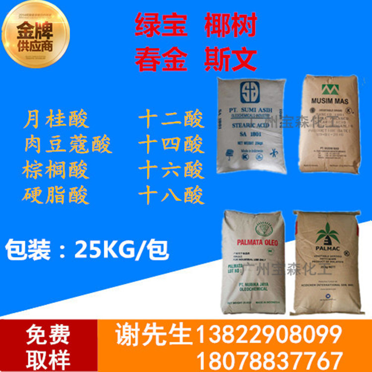 Гуанчжоу в наличии Прямая продажа стеариновой кислоты 1801/1865 Индонезийское весеннее золото/Зеленое сокровище/Кокосовая стеариновая кислота Октадекановая кислота