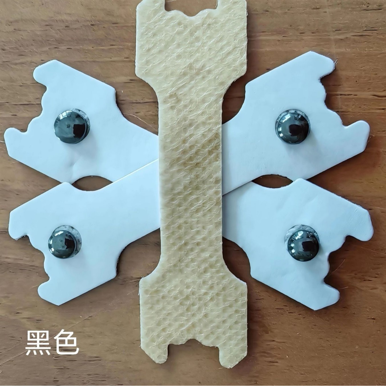 磁贴黑色抛光永久磁石{性能600-700高斯}*{性能900-1000高斯}、黑色环氧工艺不掉色2000高斯,优质粘性医用胶布贴等部件组成.黑色是磁石本色,与玛瑙高温摩擦抛光而成,无任何化学品。多色环氧工艺不掉色可反复使用强磁达2000-3000高斯,