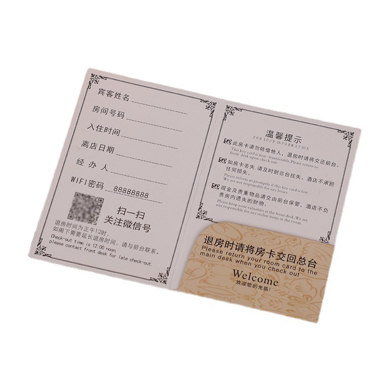 Крышка карты номера Отель Клуб Проживание в семье Бумажная Крышка карты Печать конвертов Членский билет в отеле Белая карта Мелованная бумага Цветная печать